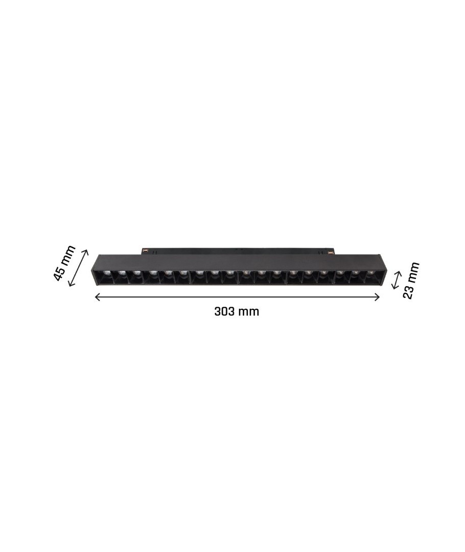Med en dimension på 23 x 303 x 42 mm, är den kompakt och enkel att montera. Notera att produkten har en IP20-klassificering och är därmed inte vattentät, vilket innebär att den bör installeras på torra platser.
