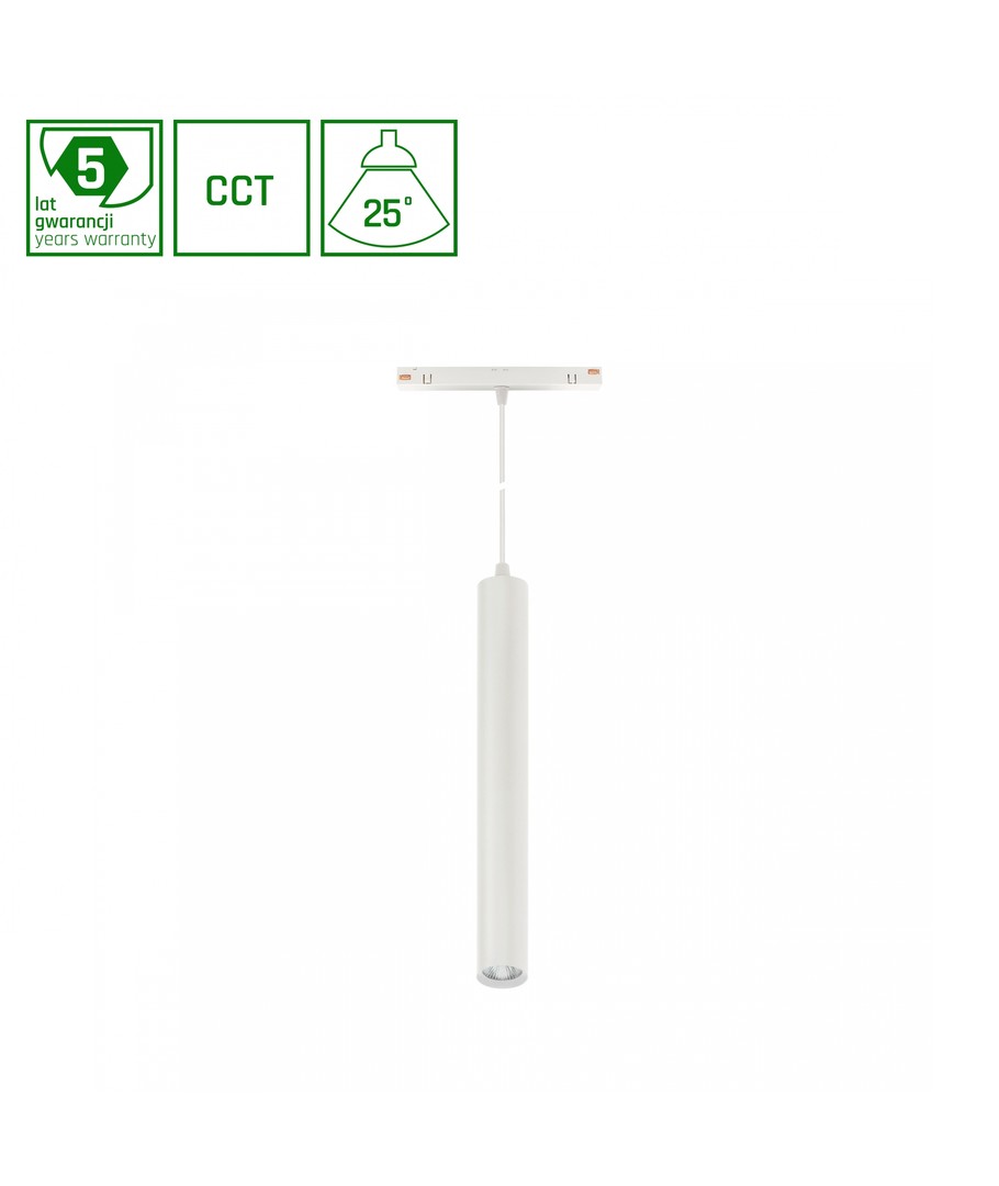 Denna nedhängda ljuskälla erbjuder inte bara en stilren design, utan ger även ett fokuserat och kontrollerat ljus med en spridningsvinkel på 25°, vilket är idealiskt för både hemmiljöer och professionella utrymmen.