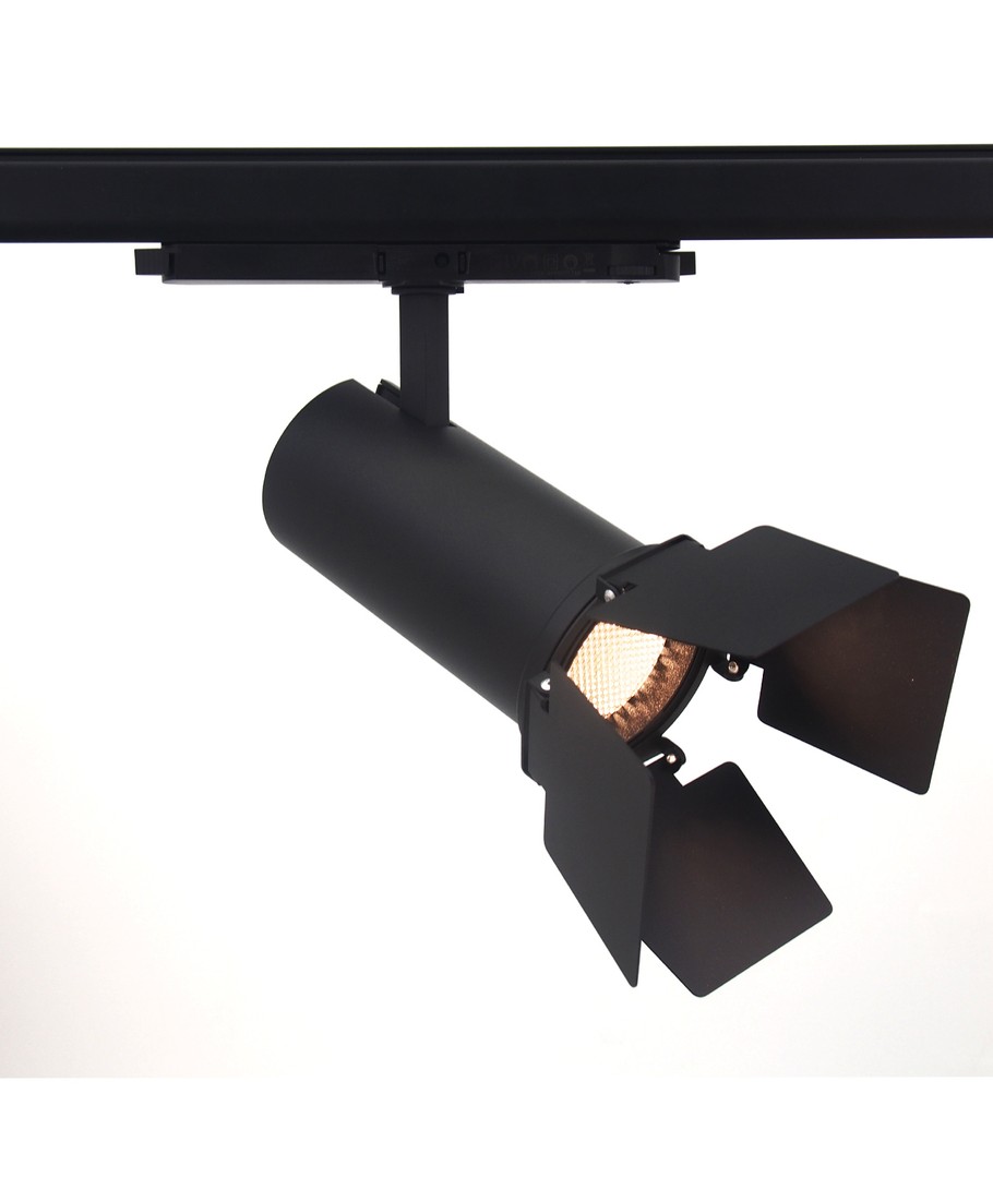 För professionell belysning ställs höga krav - Denna 30W 3-fas skenspotlight är dimbar via DALI-styrning och levereras komplett med barndoors för exakt styrning av ljuset.