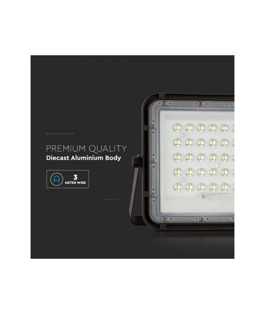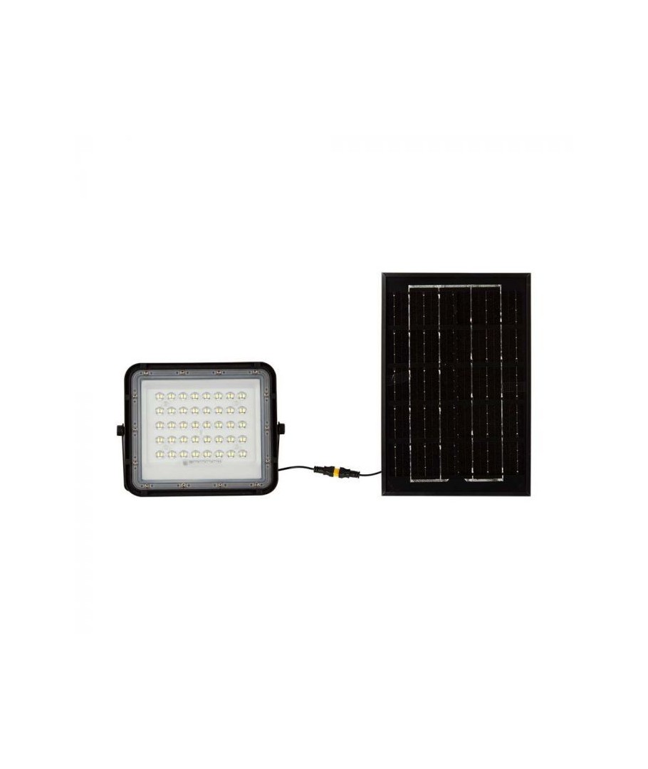 V-Tac 6W LED Solar strålkastare - Svart, en praktisk och energieffektiv lösning för utomhusbelysning. Denna strålkastare inkluderar en solcell och fjärrkontroll och är designad för att klara alla väderförhållanden med sin IP65-klassning. Den har även en praktisk timerfunktion som låter dig ställa in den så att den stängs av automatiskt efter en viss tidsperiod. Med en full laddningstid på endast 4-6 timmar kan denna projektor ge 12 timmars ljus. Den kommer också med en 3 meter lång sladd som ger dig flexibiliteten att placera den där du behöver den.
