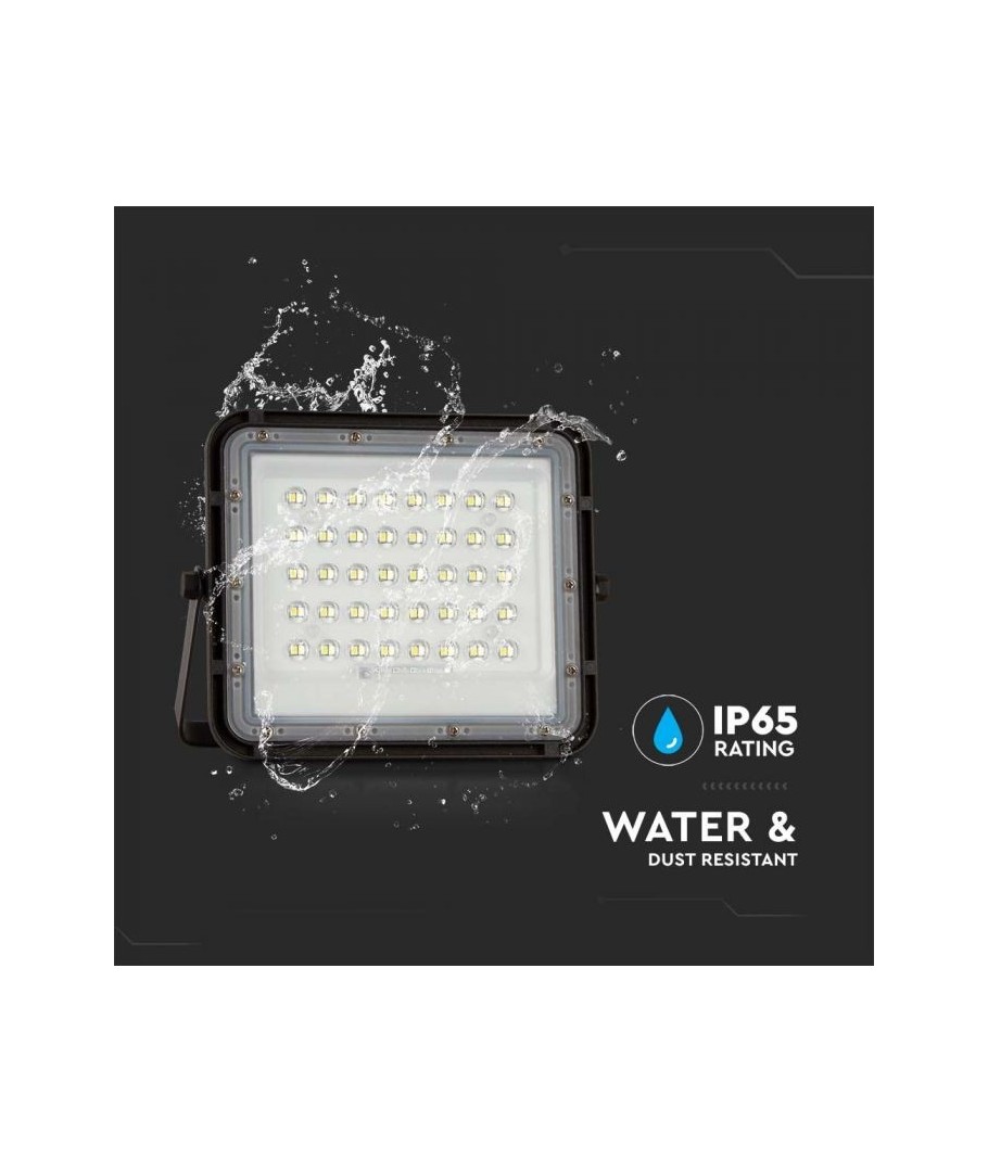 V-Tac 6W Solar strålkastare kommer med en integrerad ljuskälla vilket förenklar installationen. Den drivs av en solcell och har ett inbyggt batteri vilket inte bara är bra för miljön, men också gör det möjligt att använda produkten i områden där traditionell el inte är tillgänglig.