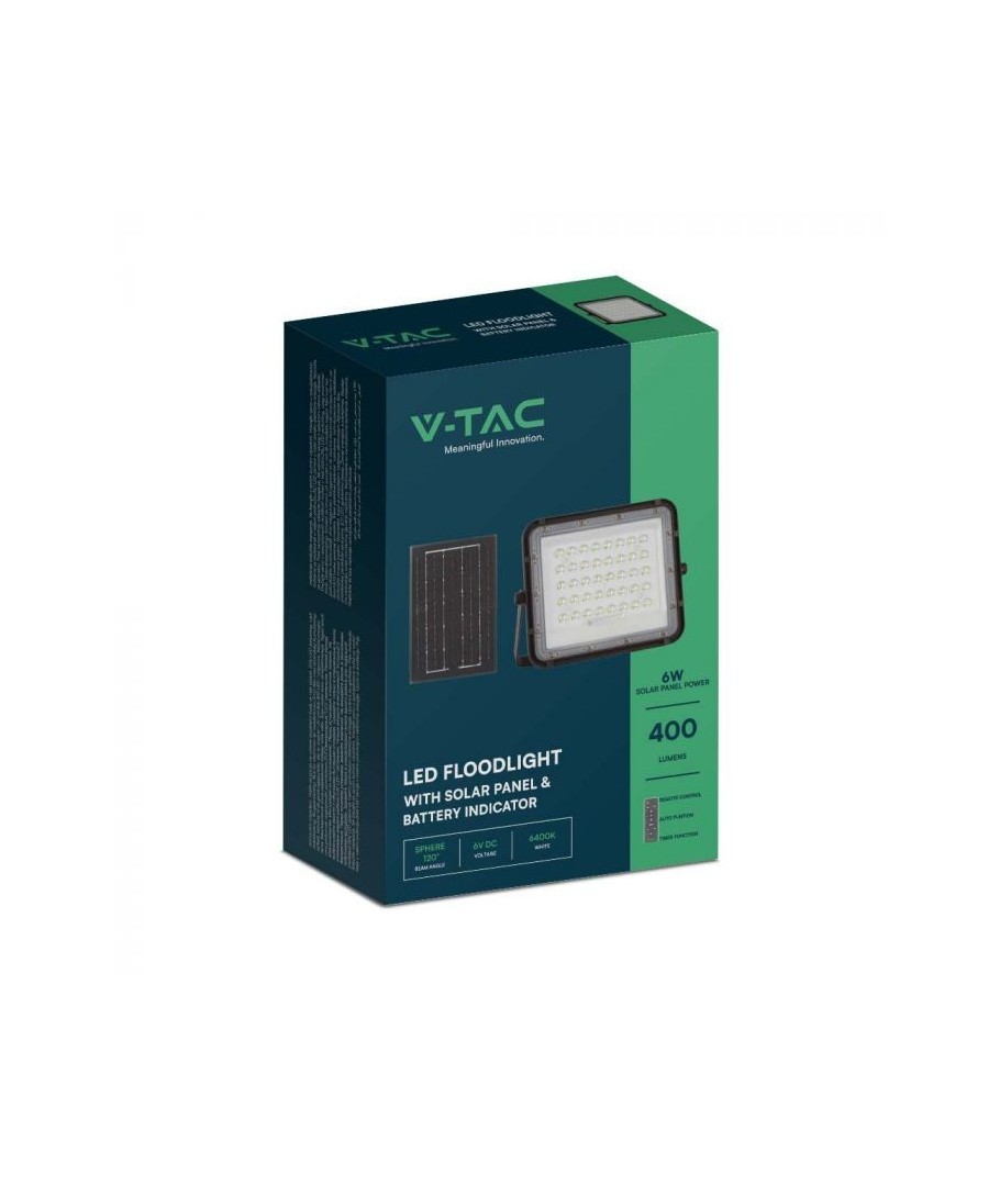 V-Tac 6W Solar strålkastare LED ger dig en kraftfull, hållbar och miljövänlig belysningslösning som är idealisk för alla utomhusmiljöer. Anpassa ljuset för din trädgård, gård eller andra utrymmen och njut av den kombination av teknik och funktionalitet som denna produkt erbjuder.