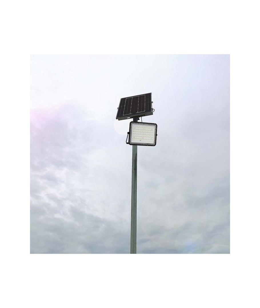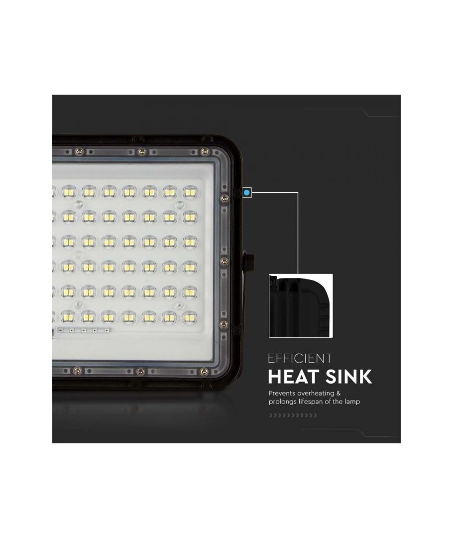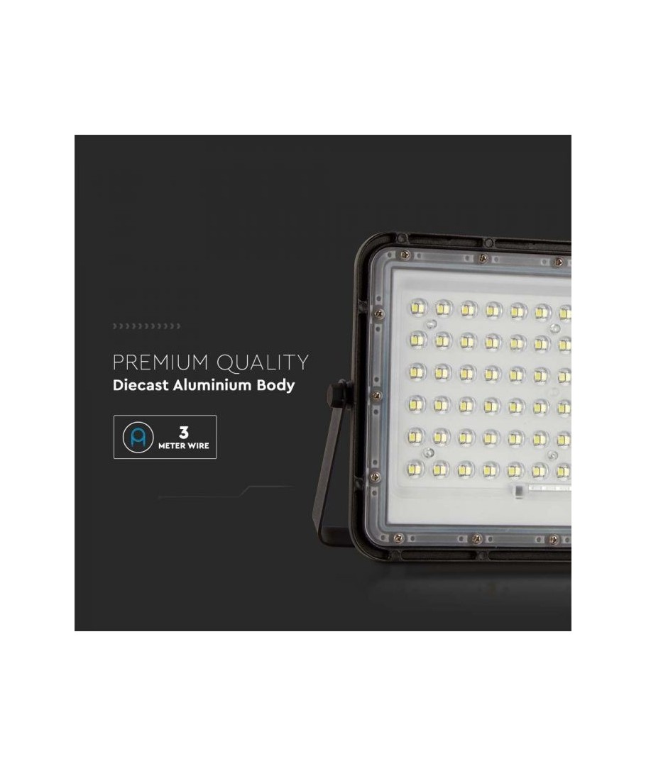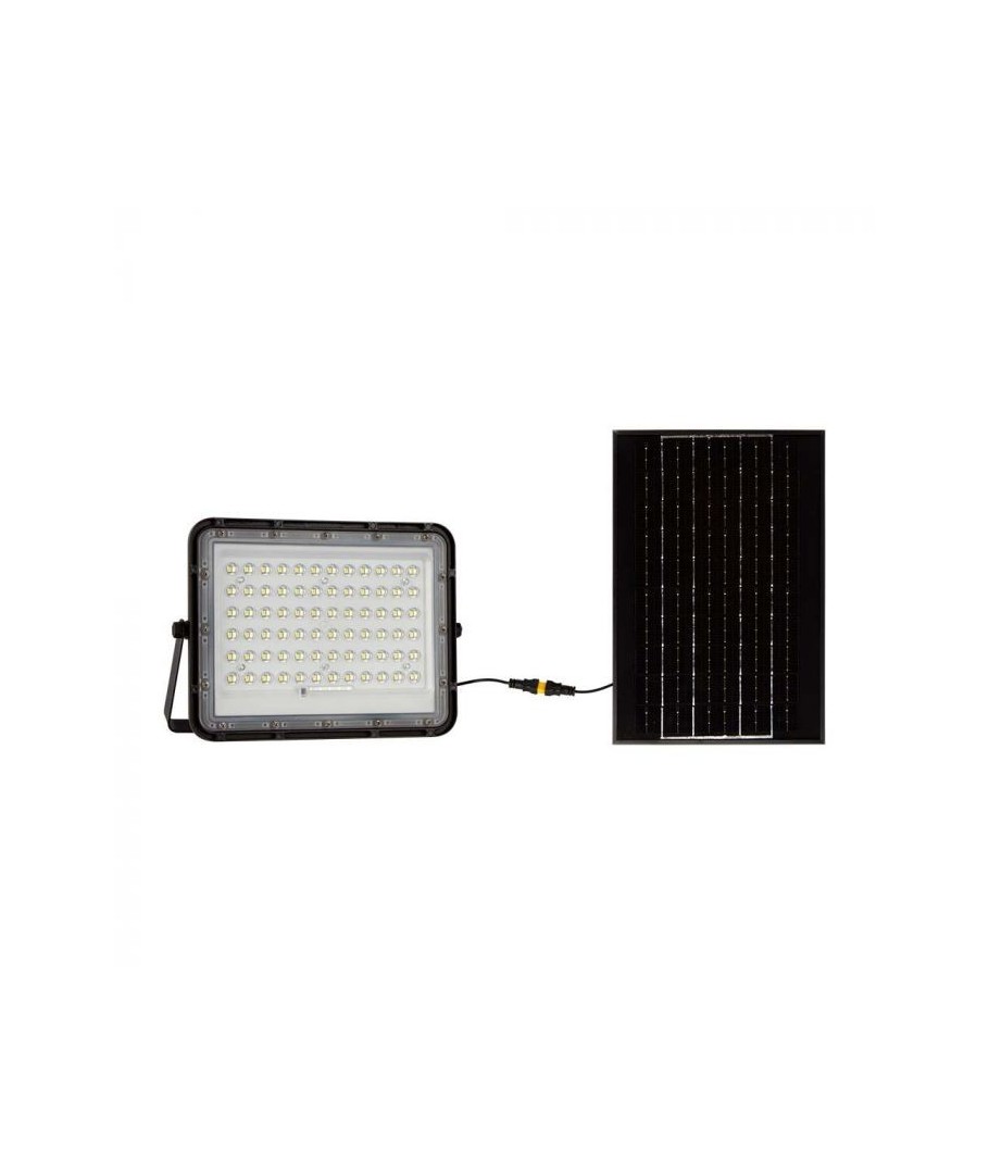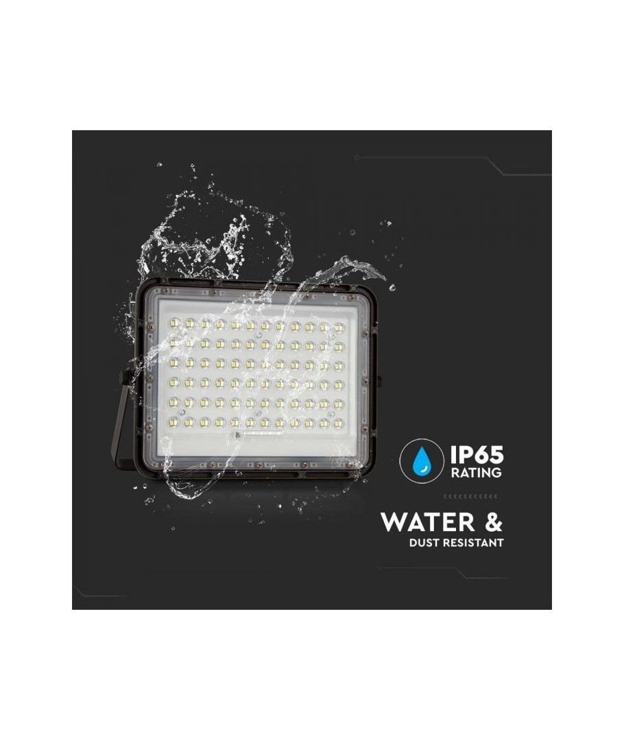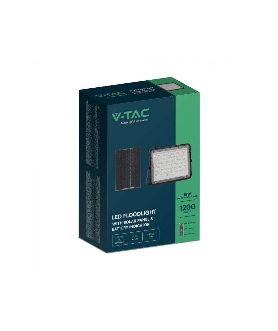 V-Tac 15W LED Solar strålkastare - Svart, en praktisk och energieffektiv lösning för utomhusbelysning. Denna strålkastare inkluderar en solcell och fjärrkontroll och är designad för att klara alla väderförhållanden med sin IP65-klassning. Den har även en praktisk timerfunktion som låter dig ställa in den så att den stängs av automatiskt efter en viss tidsperiod. Med en full laddningstid på endast 4-6 timmar kan denna projektor ge 12 timmars ljus. Den kommer också med en 3 meter lång sladd som ger dig flexibiliteten att placera den där du behöver den.