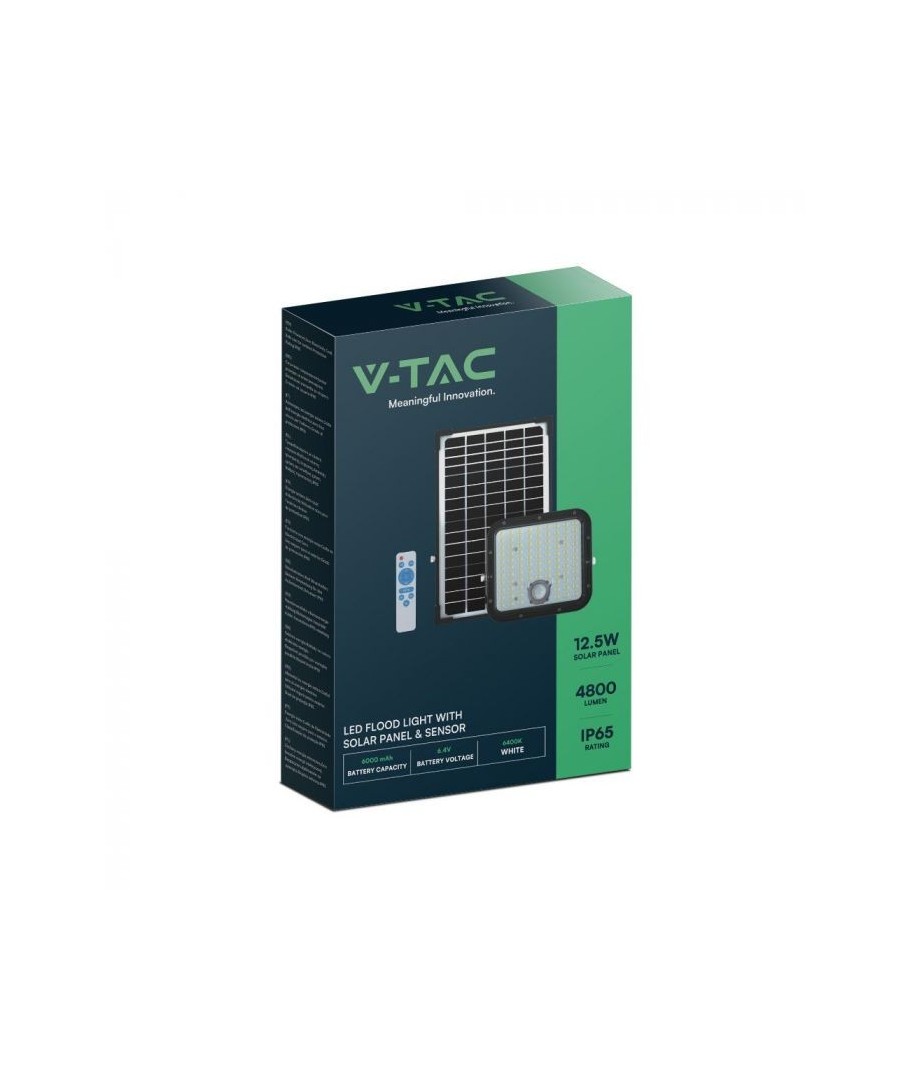 V-Tac 30W LED Solar strålkastare - Svart, en praktisk och energieffektiv lösning för utomhusbelysning. Denna strålkastare inkluderar en solcell och fjärrkontroll och är designad för att klara alla väderförhållanden med sin IP65-klassning. Den har även en praktisk timerfunktion som låter dig ställa in den så att den släcks automatiskt efter en viss tidsperiod. Med en full laddningstid på endast 4-6 timmar kan denna projektor ge 60 timmars ljus. Den kommer också med en sladd, vilket ger dig flexibiliteten att placera den där du behöver den.