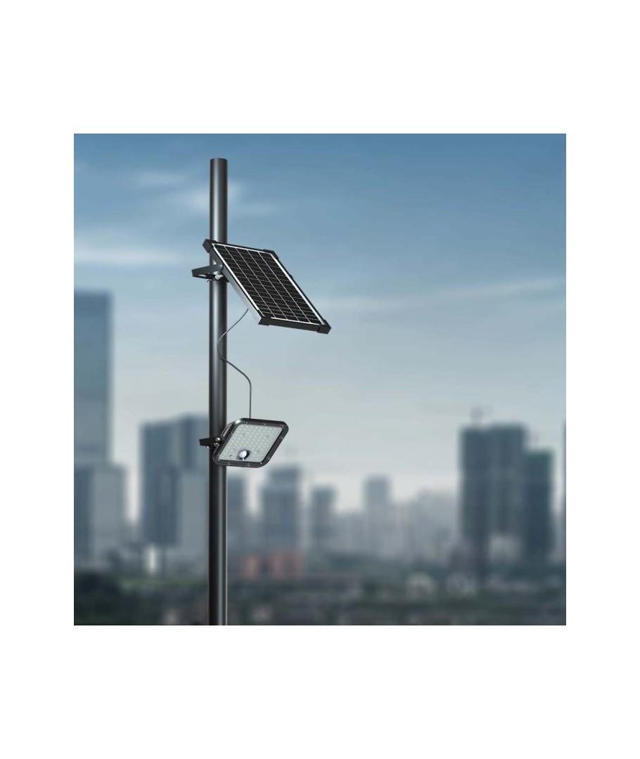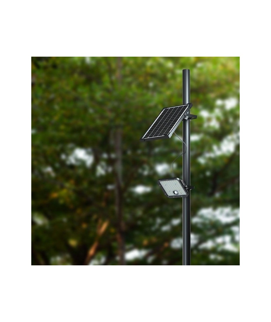Upplev en högklassig ljuslösning som kombinerar miljövänlig teknik med robust design. Denna solcellsdrivna LED-strålkastare är den perfekta lösningen för belysning där nätanslutning är ett problem eller som en extra säkerhetsåtgärd. Med en effekt på 30W och en ljusstyrka av 4800 lumen, erbjuder den kraftfullt och klart ljus.