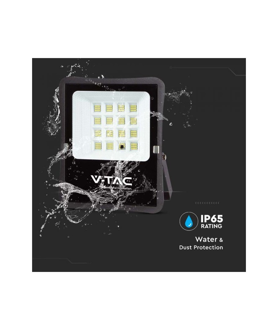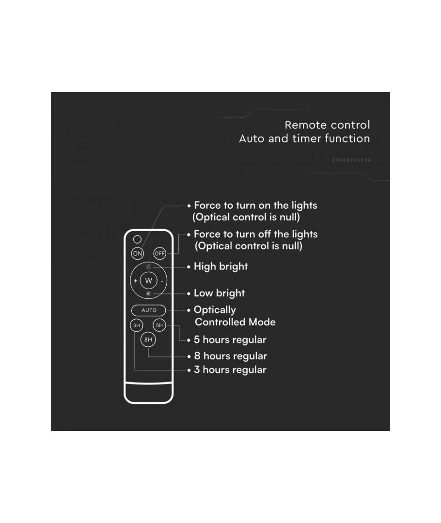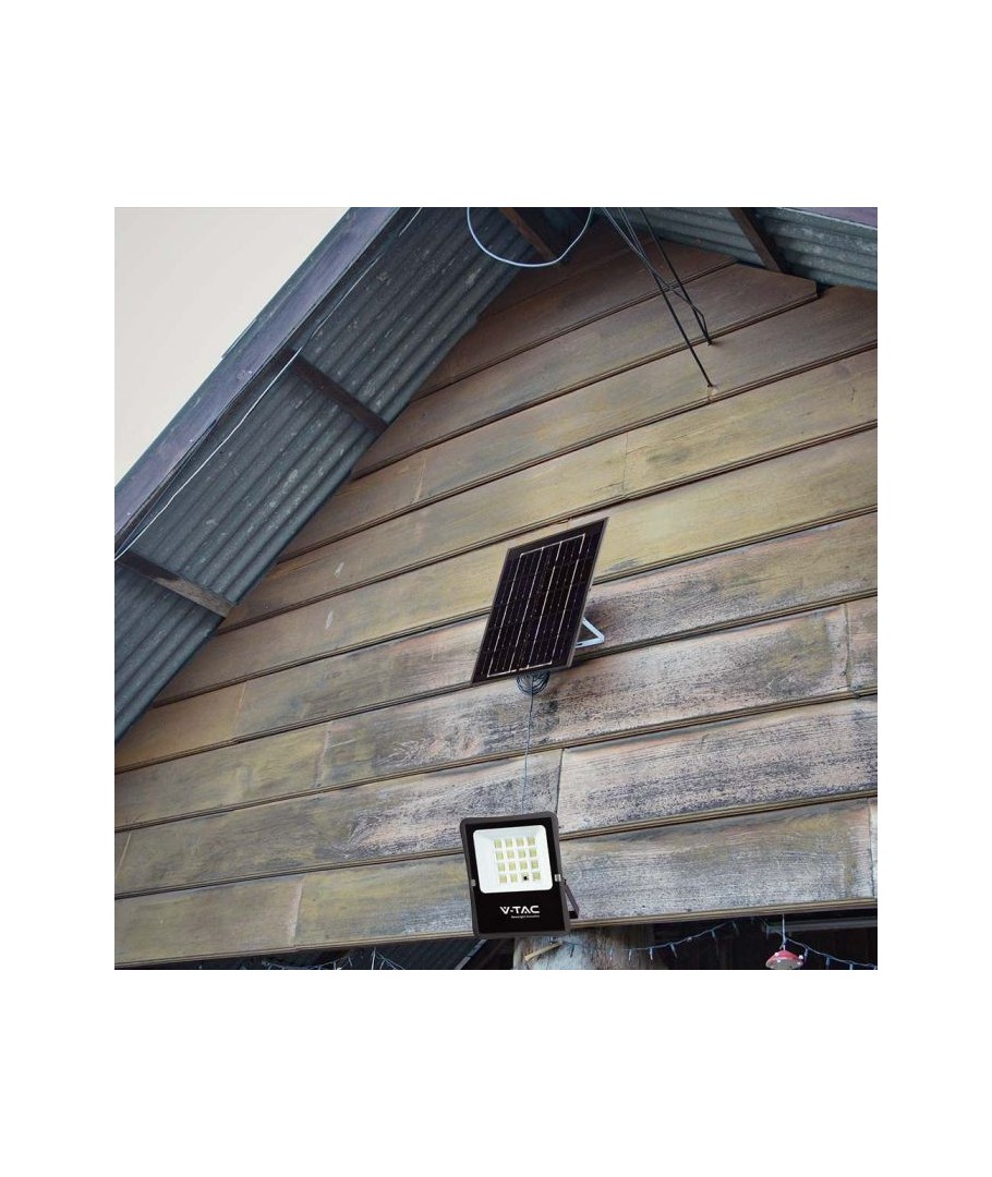 V-Tac 12W LED Solar strålkastare - Svart, en praktisk och energieffektiv lösning för utomhusbelysning. Denna strålkastare inkluderar en solcell och fjärrkontroll och är designad för att klara alla väderförhållanden med sin IP65-klassning. Den har även en praktisk timerfunktion som låter dig ställa in den så att den stängs av automatiskt efter en viss tidsperiod. Med en full laddningstid på endast 4 timmar kan denna projektor ge 8 timmars ljus. Den kommer också med en 5 meter lång sladd, vilket ger dig flexibiliteten att placera den där du behöver den.