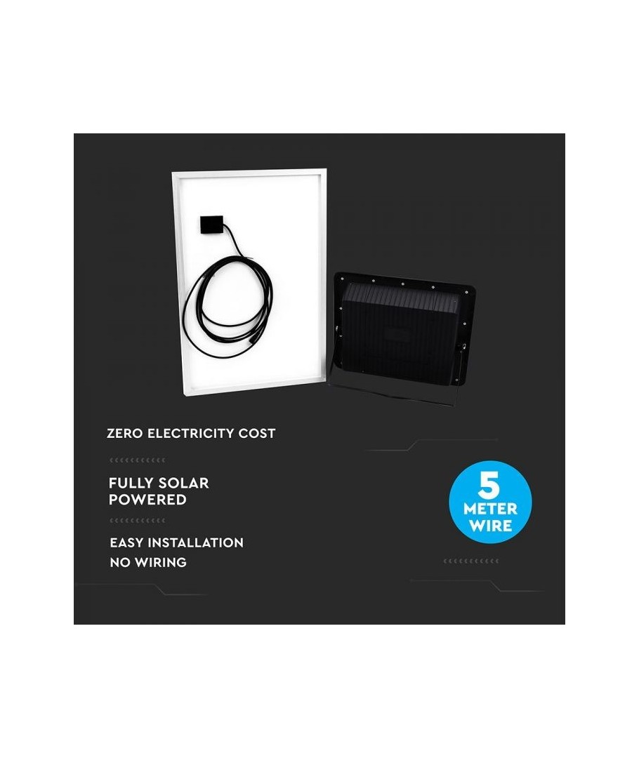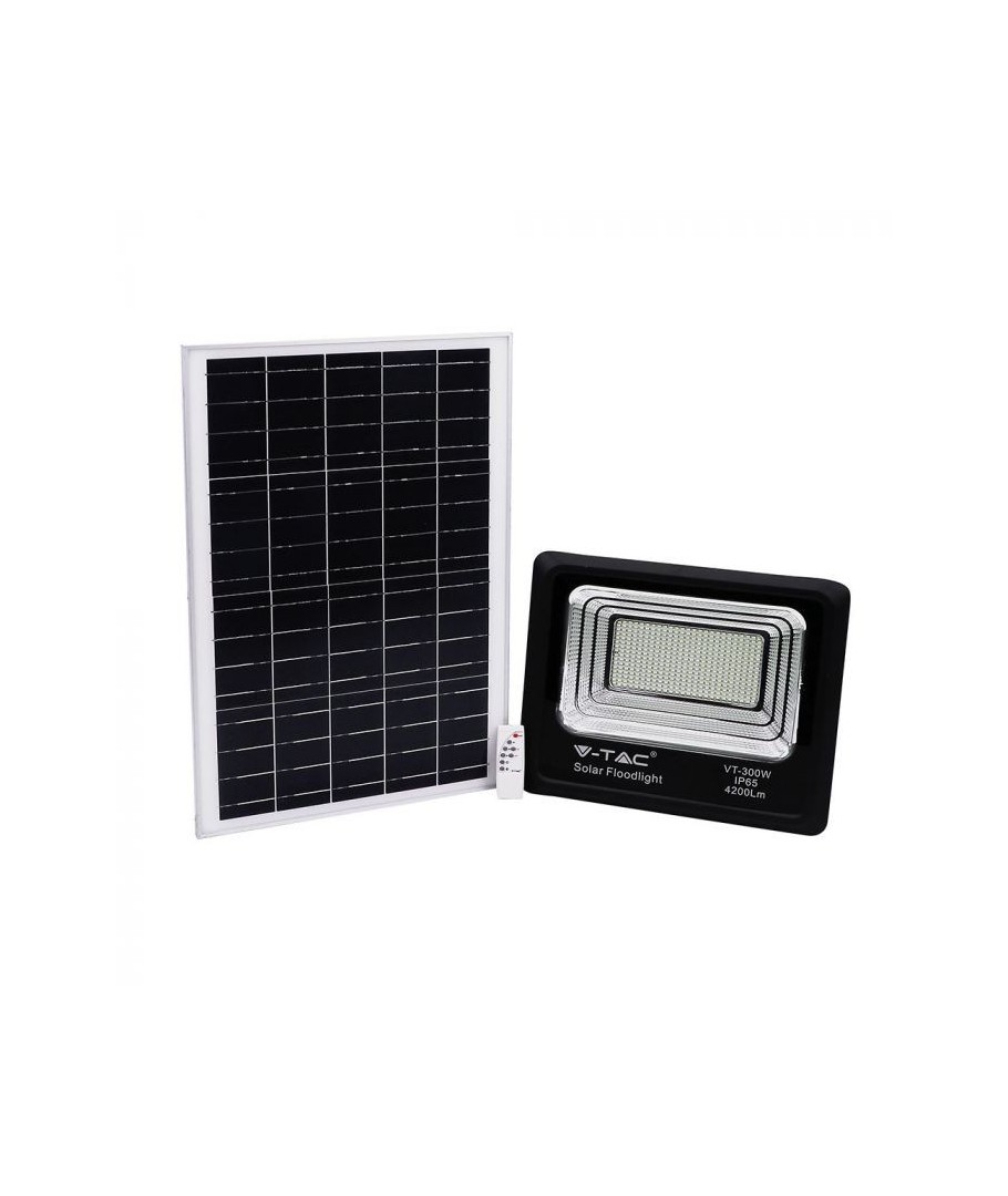 V-Tac 50W LED Solar strålkastare - Svart, en praktisk och energieffektiv lösning för utomhusbelysning. Denna strålkastare inkluderar en solcell och fjärrkontroll och är designad för att klara alla väderförhållanden med sin IP65-klassning. Den har även en praktisk timerfunktion som låter dig ställa in den så att den stängs av automatiskt efter en viss tidsperiod. Med en full laddningstid på endast 4 timmar kan denna projektor ge 8 timmars ljus. Den kommer också med en 5 meter lång sladd, vilket ger dig flexibiliteten att placera den där du behöver den.