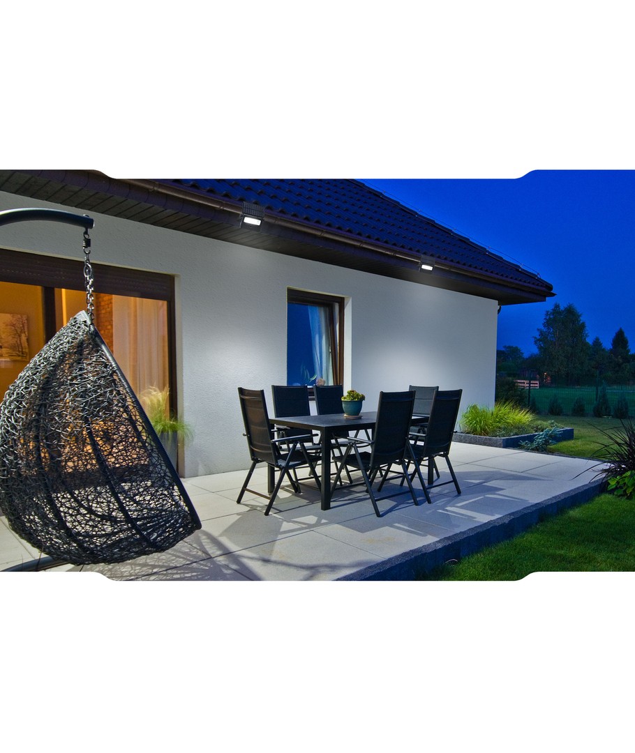 Strålkastaren kan med fördel användas när exempelvis trädgården eller uppfarten behöver belysas.