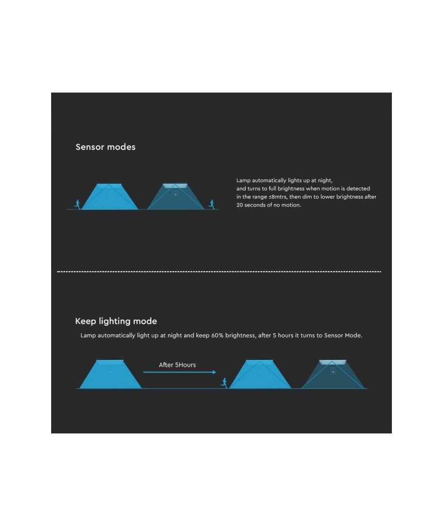 Denna V-Tac vägglampa är en pålitlig och energibesparande lösning för att lysa upp din trädgård, terrass eller uppfart. Den soldrivna funktionen gör den både miljövänlig och kostnadseffektiv. Med sin sensor och långvariga batteri kommer den alltid att lysa upp i mörkret när du behöver det.