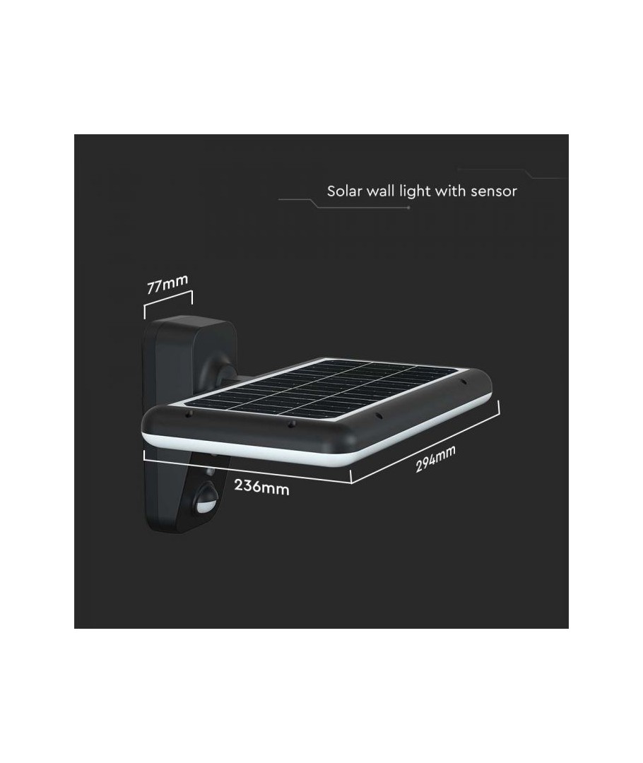 Uppgradera ditt utomhusområde med V-Tac 15W LED Solar vägglampa. Denna svarta vägglampa är utrustad med en sensor och har en hög skyddsgrad IP65, vilket gör den lämplig för utomhusbruk.