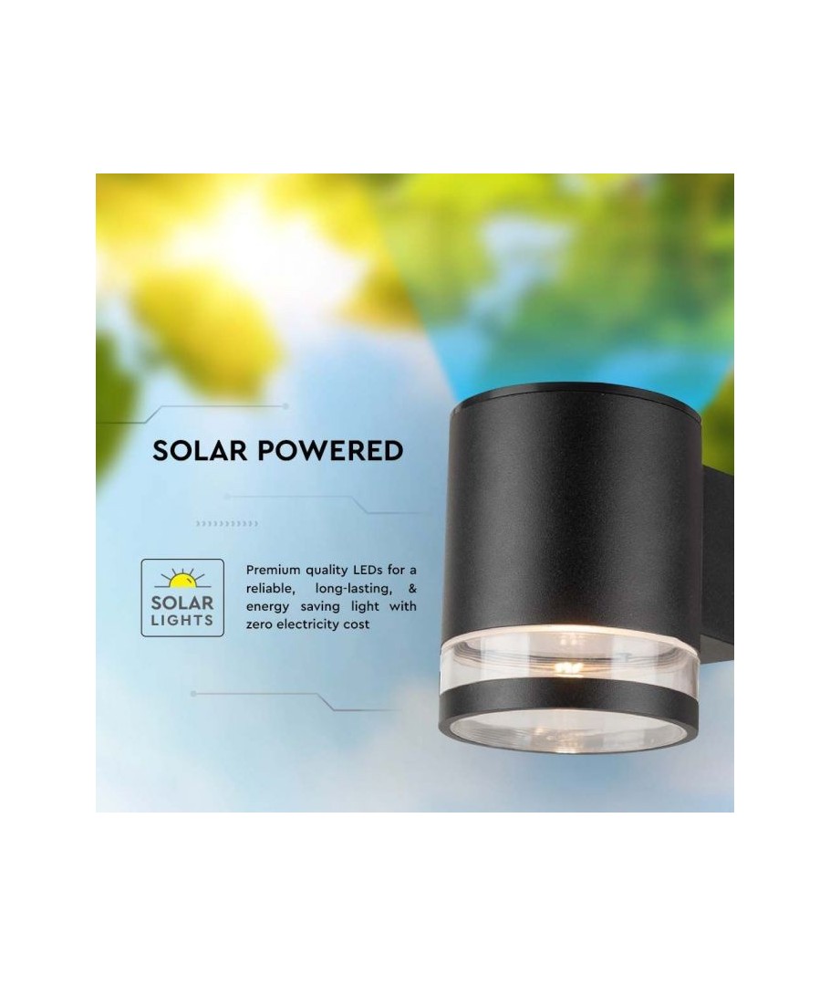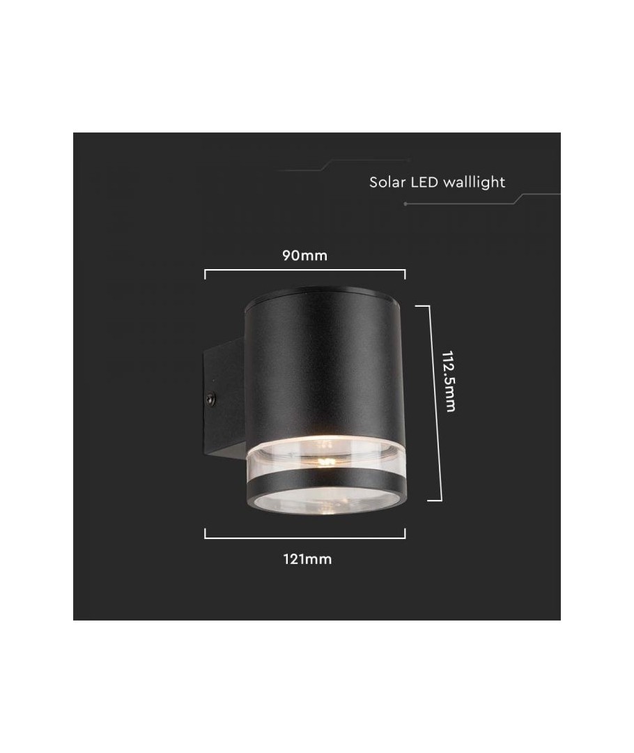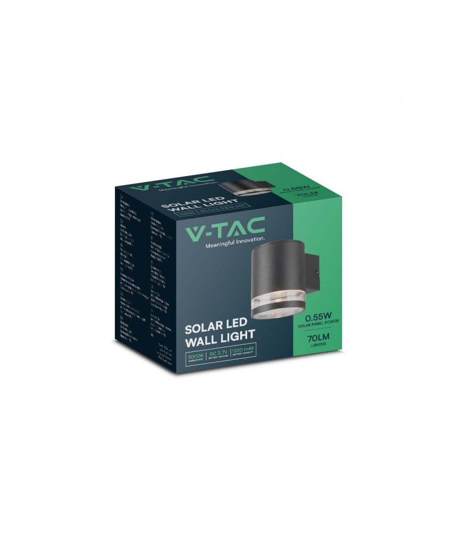 Skapa en stämningsfull atmosfär och utöka dina utomhusupplevelser med V-Tac 0,55W LED Solar vägglampa i svart.