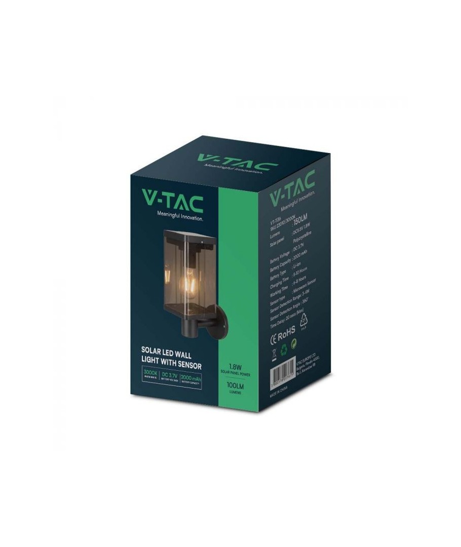 Sammanfattningsvis är denna V-Tac 2.5W Solar vägglampa inte bara ett praktiskt belysningsalternativ, utan också ett vackert och hållbart val för din utomhusmiljö. Med sina intelligenta funktioner och vädertåliga konstruktion kommer den att ge trygg och effektiv belysning år efter år.