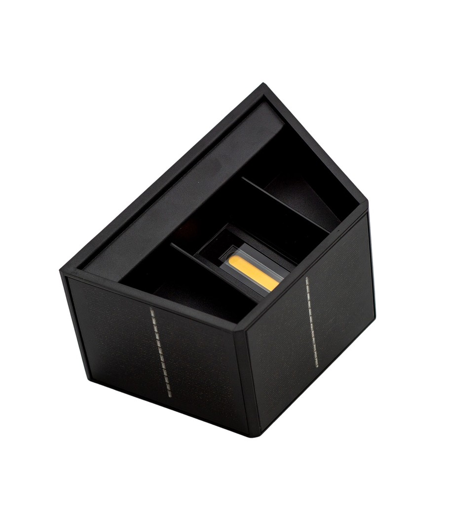 Förhöj din utomhusmiljö med denna stilrena solcell vägglampa i svart som erbjuder både funktionalitet och stil. Med dess möjlighet att lysa både uppåt och nedåt skapar den en inbjudande atmosfär samtidigt som den ger säker belysning.