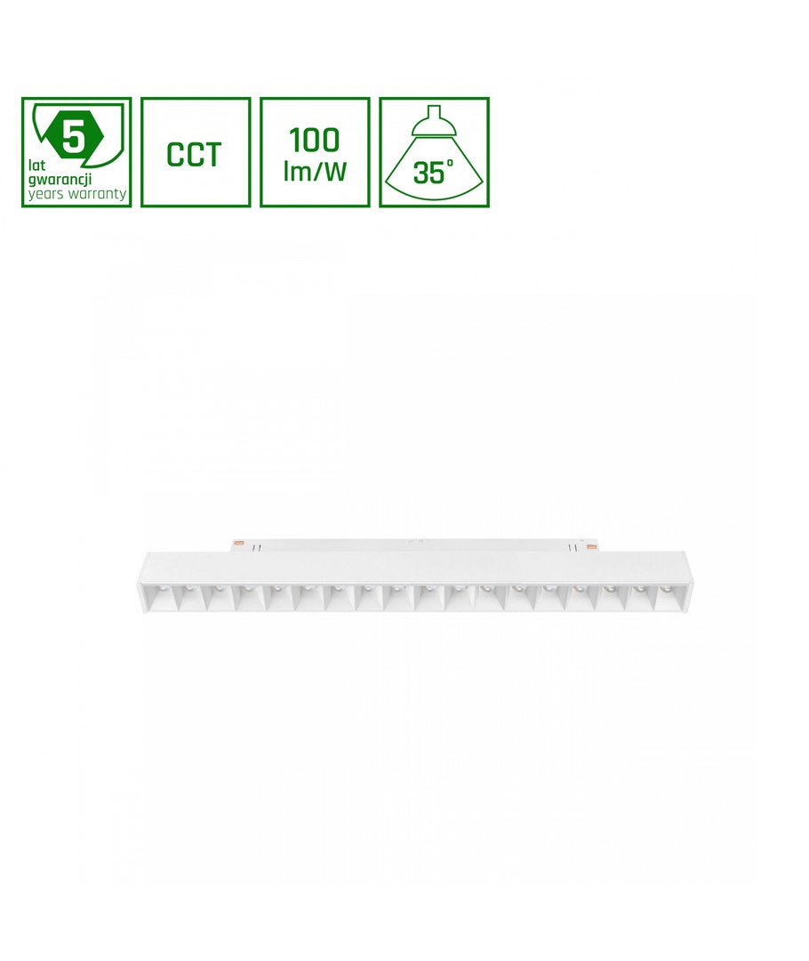 Denna moderna och effektiva ljusskena kombinerar imponerande teknik med elegant design, perfekt för olika belysningsbehov.