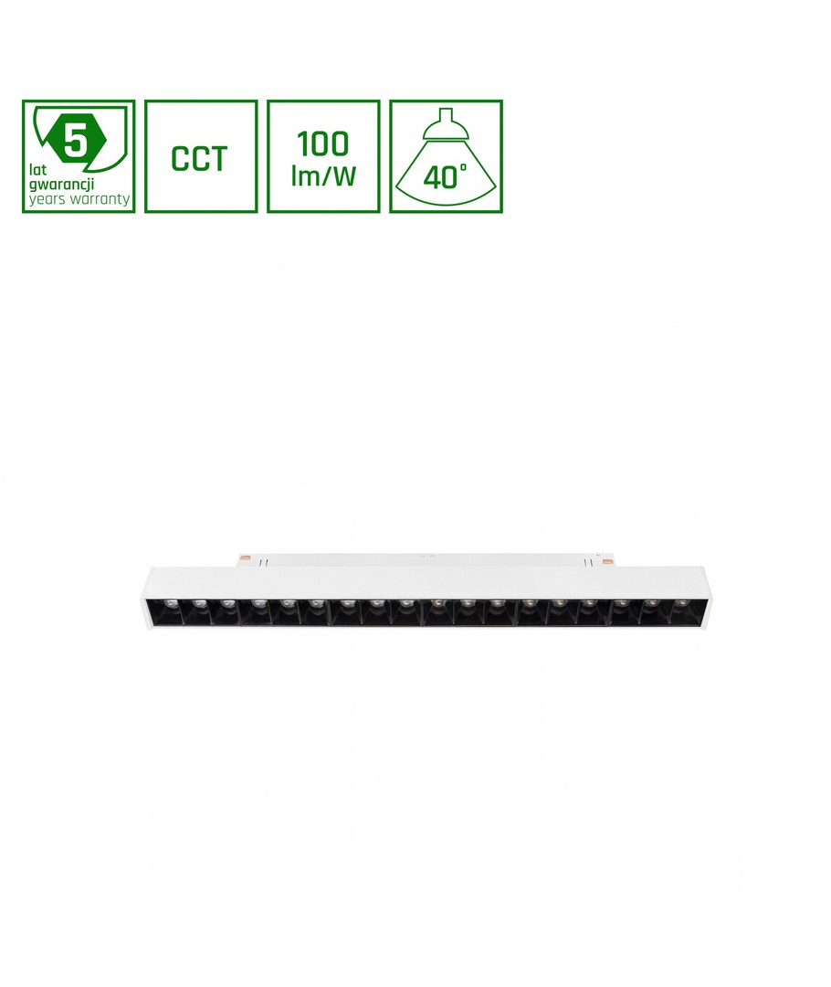 Med dimensioner på 330 x 23 x 42 mm passar denna skena perfekt in i olika miljöer utan att ta mycket utrymme. Den är designad i en elegant vit färg och har en integrerad ljuskälla som förstärker hela intrycket med sin IP20-klassning.