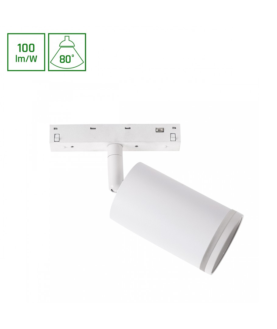 Denna effektiva spotlampa, med sina kompakta dimensioner på 160 x 55 x 100 mm, passar perfekt i moderna inredningar där stil och funktionalitet möts. Lampans stilrena vita färg gör att den smälter in i de flesta miljöer, samtidigt som den förser utrymmet med en behaglig belysning.