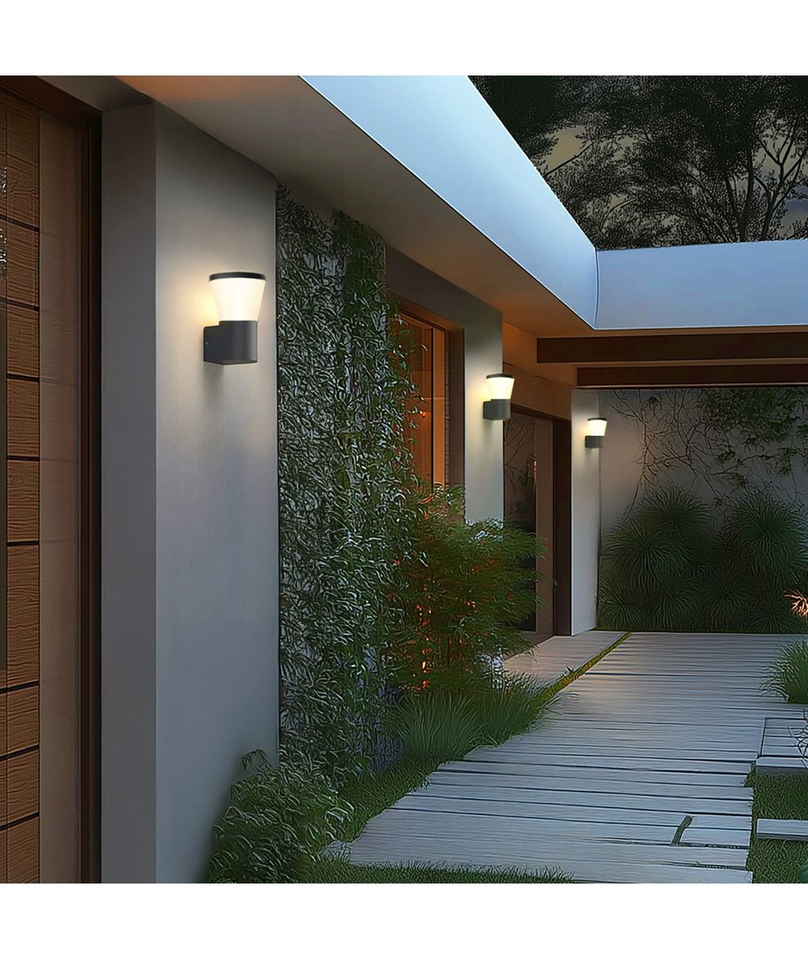 Designad för att smälta in i olika miljöer, är lampan i en stilren svart färg, vilket gör att den smidigt kan integreras i både modern och klassisk utomhusarkitektur.