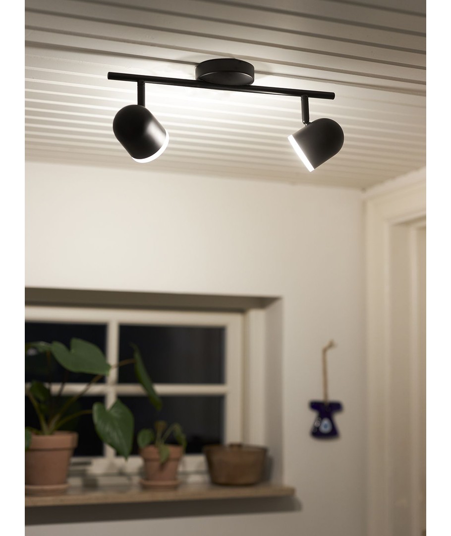 Teater är namnet på denna nya serie taklampor från Danska Nielsen Light - snygg 2-spot i en läcker matt svart färg, monterad på en skena.