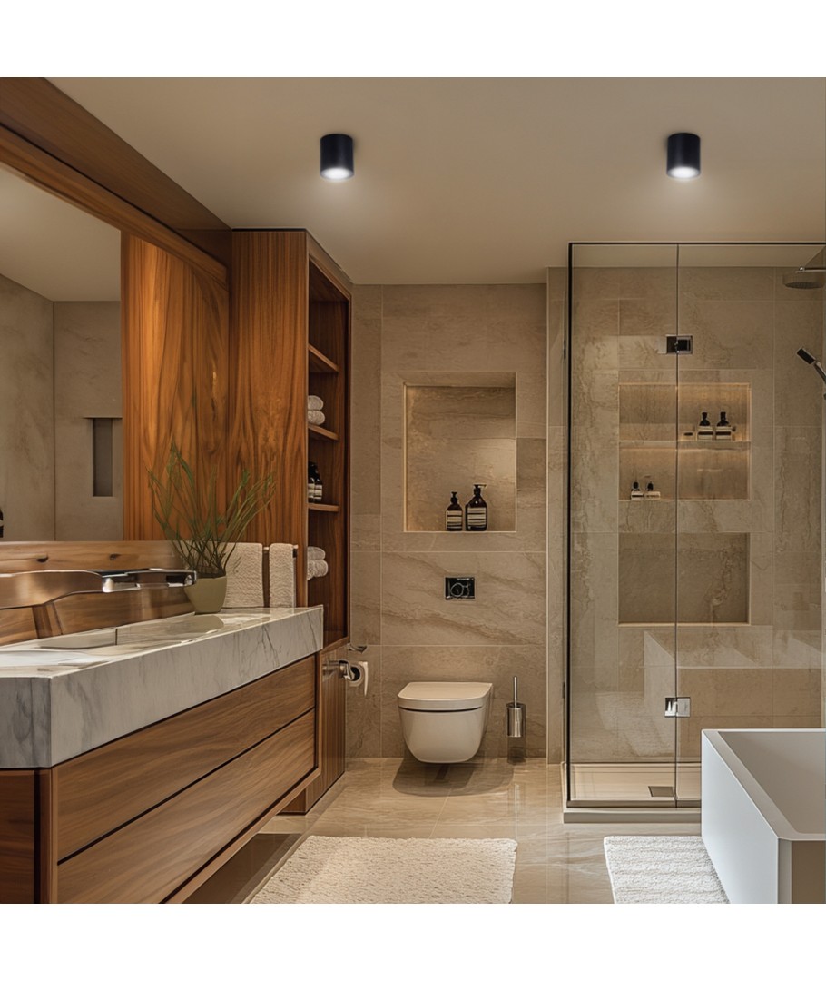 GU10 utanpåliggande spot i svart är en stilren och funktionell taklampa som passar perfekt för både våt- och torrzoner tack vare sin IP44 klassificering.
