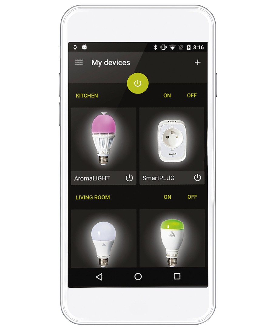 Farvetemperaturen samt andre indstillinger kan styres via AwoX app'en eller med en EGLO Connect Remote. (Medfølger ikke)