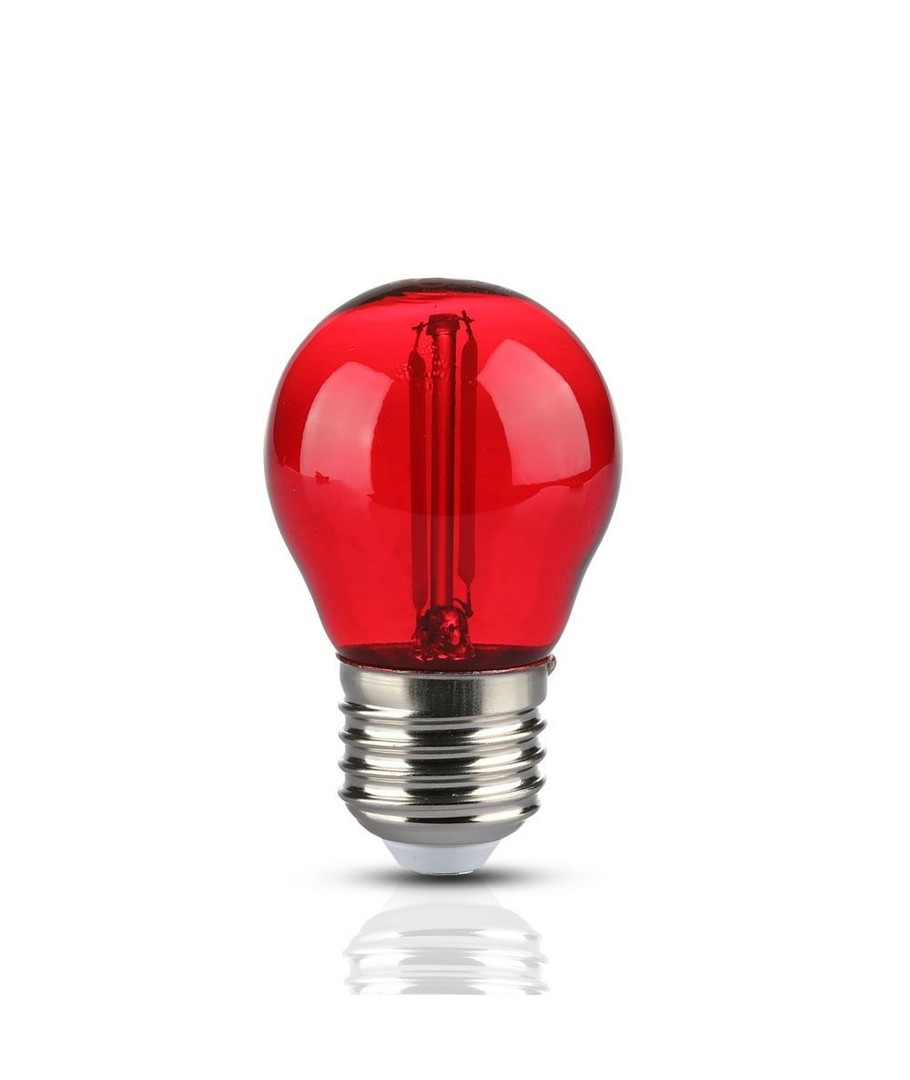 V-Tac 2W Färgad LED Klotlampa är en effektiv och energisparande lösning som ersätter den traditionella 10W glödlampan.