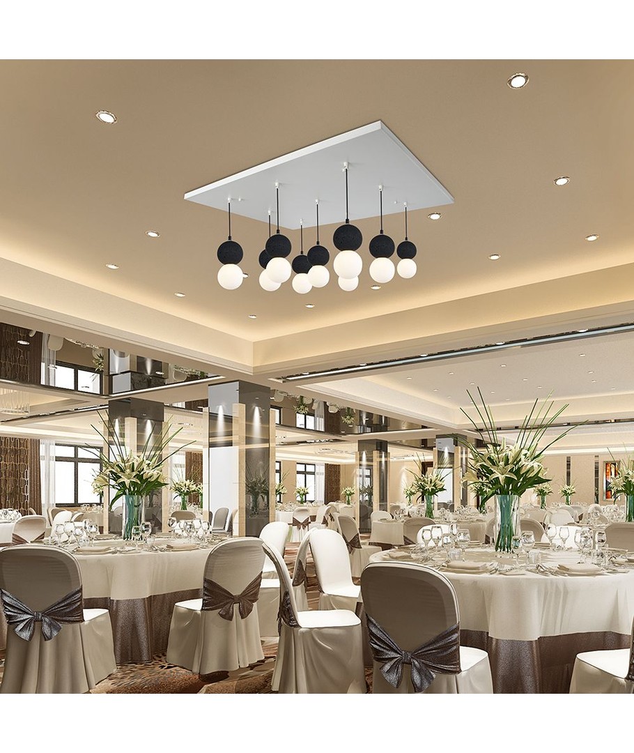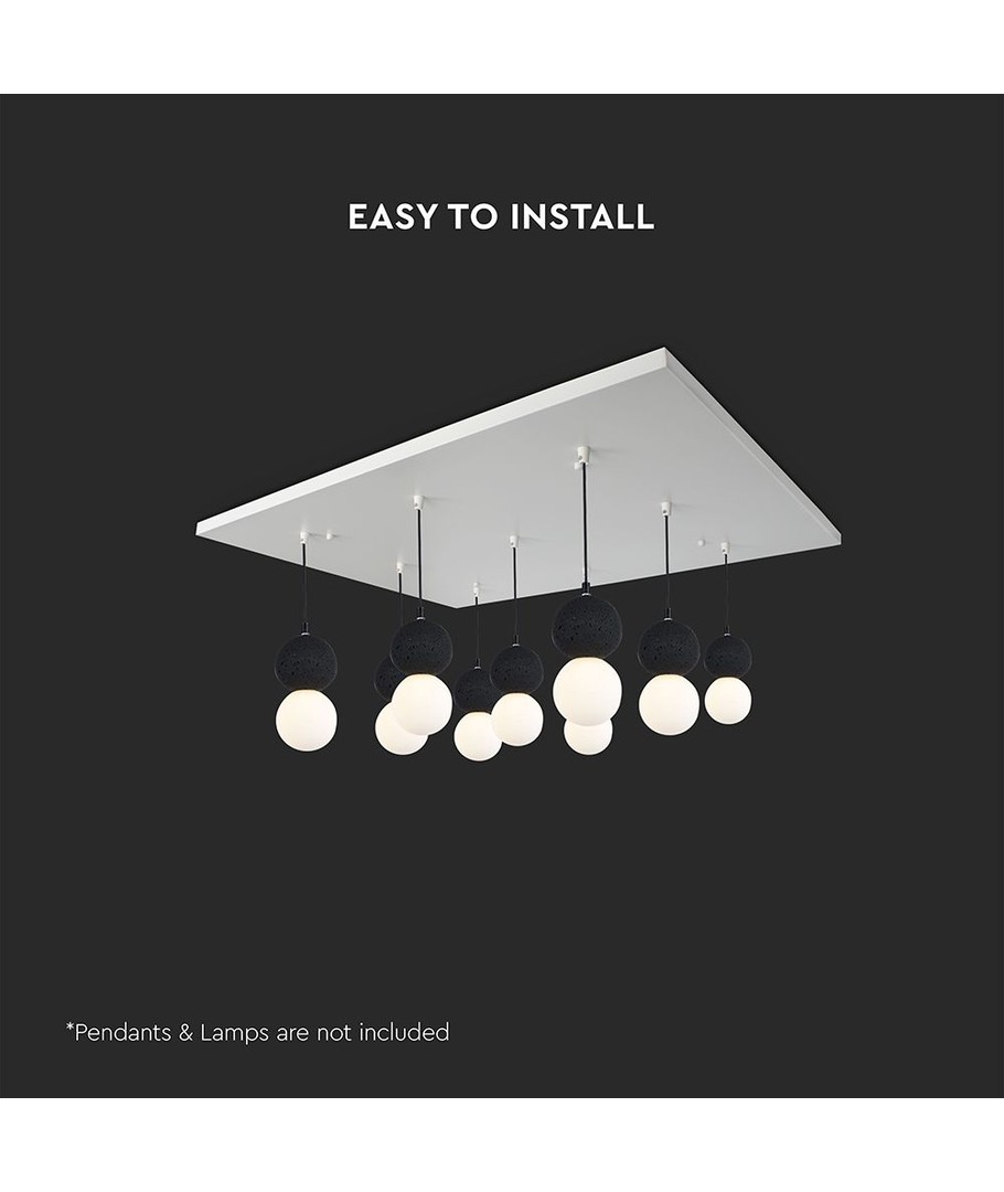 Den eleganta och praktiska takkåpan i matt vitt är designad för att rymma upp till 9 pendelupphäng, vilket gör den idealisk för att skapa en snygg kluster av pendlar i alla rum.