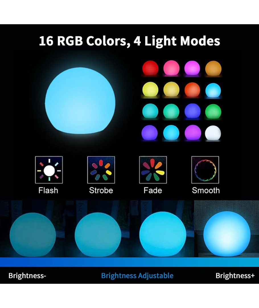 Skapa en stämningsfull belysning med våra LED-bollar, som lyser i vackra RGB-färger och effekter. Alla bollar är uppladdningsbara, tillverkade i slitstark plast och helt vattentäta, så de kan till och med flyta på vatten. Med den medföljande fjärrkontrollen byter du enkelt mellan färger, effekter och ljusstyrka på en eller flera bollar åt gången.