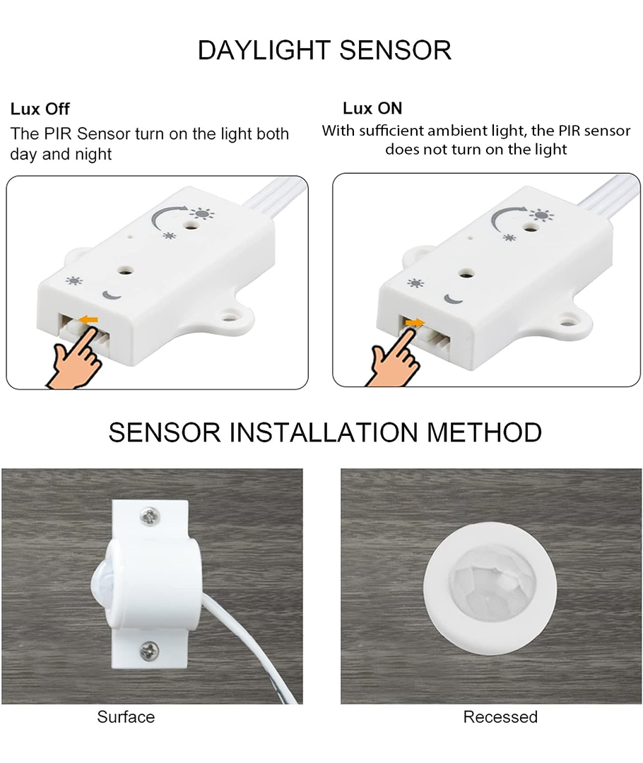 Dagsljussensorn ser till att din belysning endast tänds när det behövs. Den justerar automatiskt ljusstyrkan utifrån det naturliga ljuset i rummet, vilket sparar energi och säkerställer rätt ljusnivå.