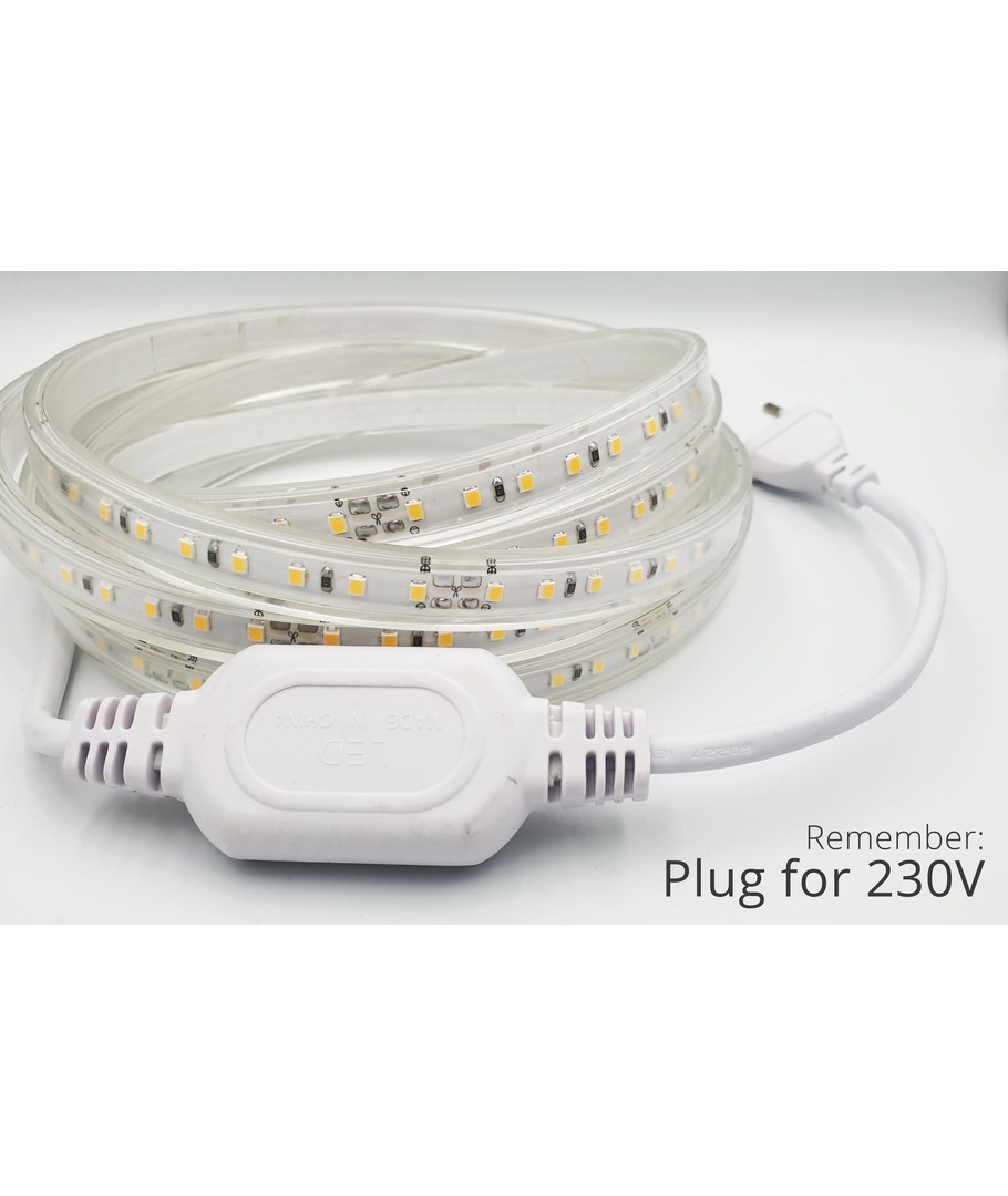 230V, IP67, 1000lm/m, kan klippas var 10:e cm, upp till 100m