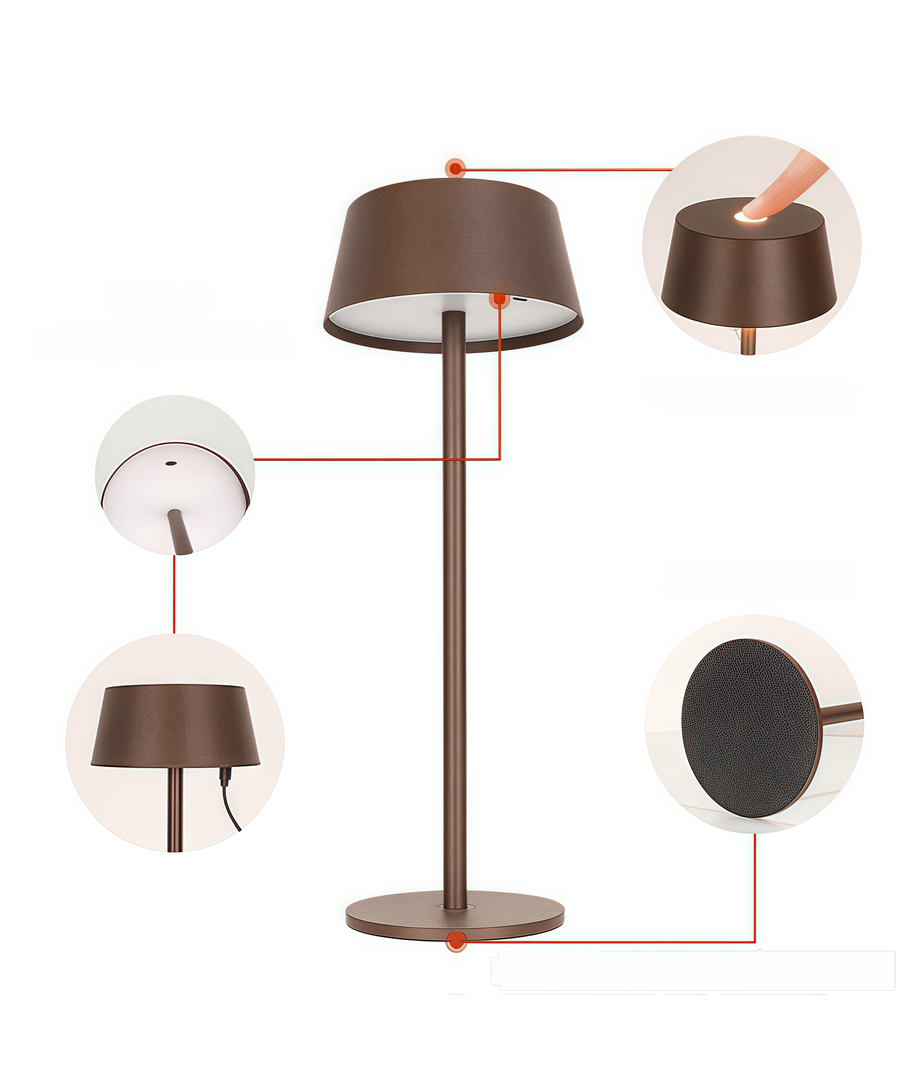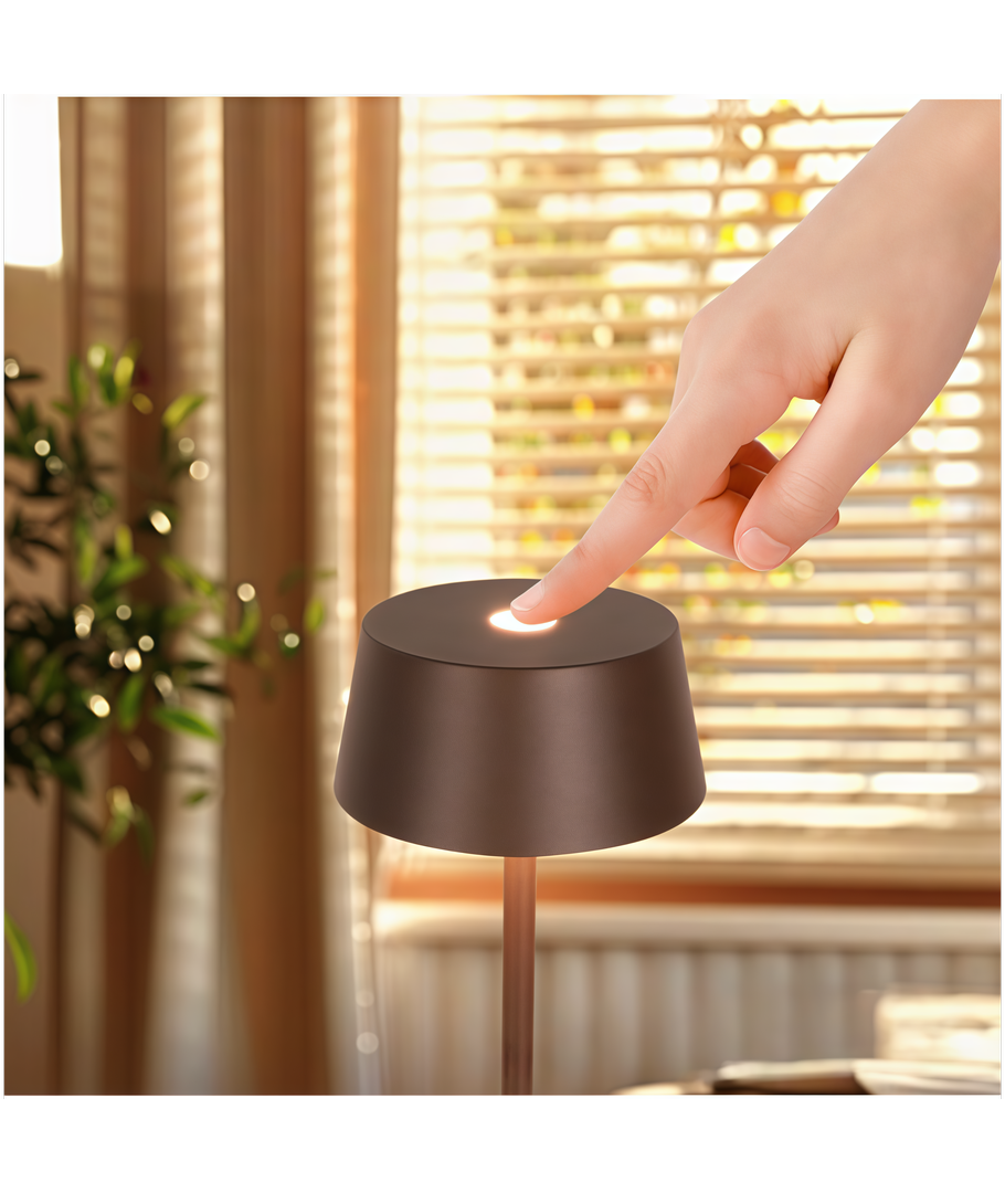 Denna eleganta och funktionella LED-bordslampa erbjuder en uppladdningsbar och dimbar ljuslösning för alla dina behov. Med en smakfull brun finish och stilren design passar den perfekt i alla moderna inredningar.