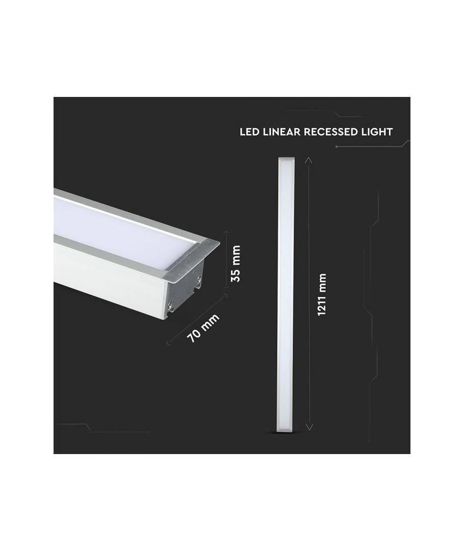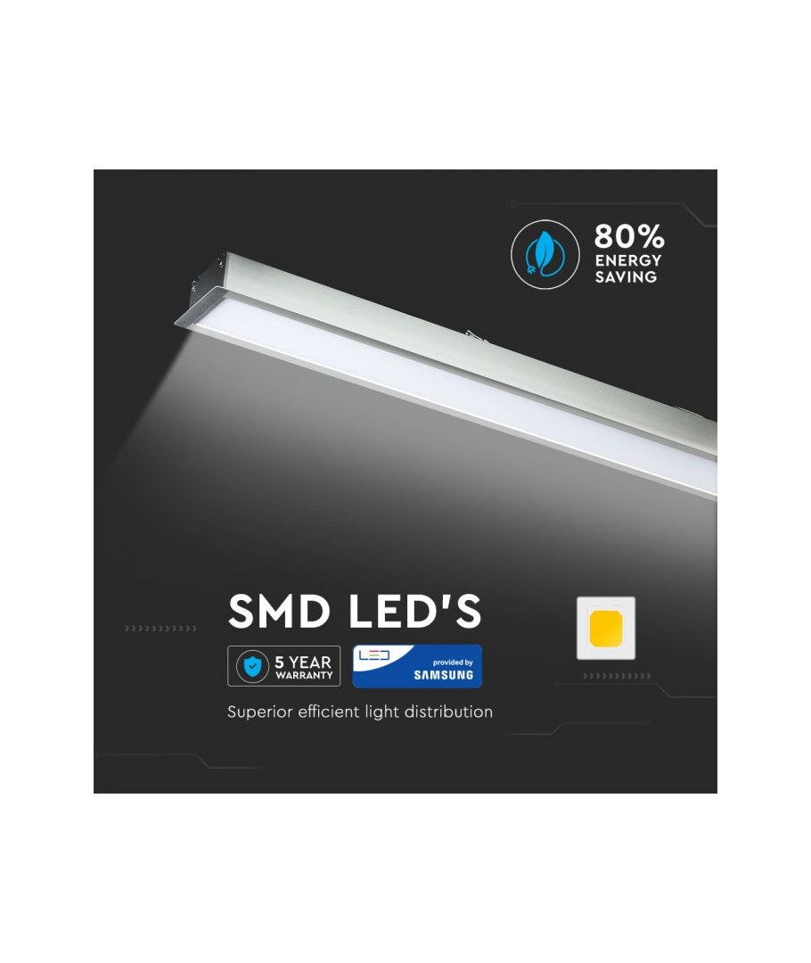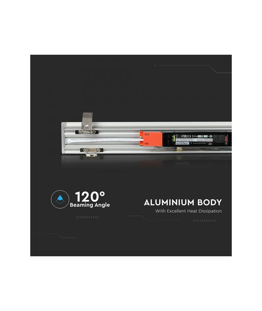 Detta kraftfulla LED linjära ljus erbjuder en effekt på 40W och är idealiskt för att skapa en ljus och energibesparande miljö. Med en imponerande ljusstyrka på 3200 lumen och en bred ljusspridning på 120 grader säkerställer denna armatur en jämn och effektiv belysning av varje utrymme.