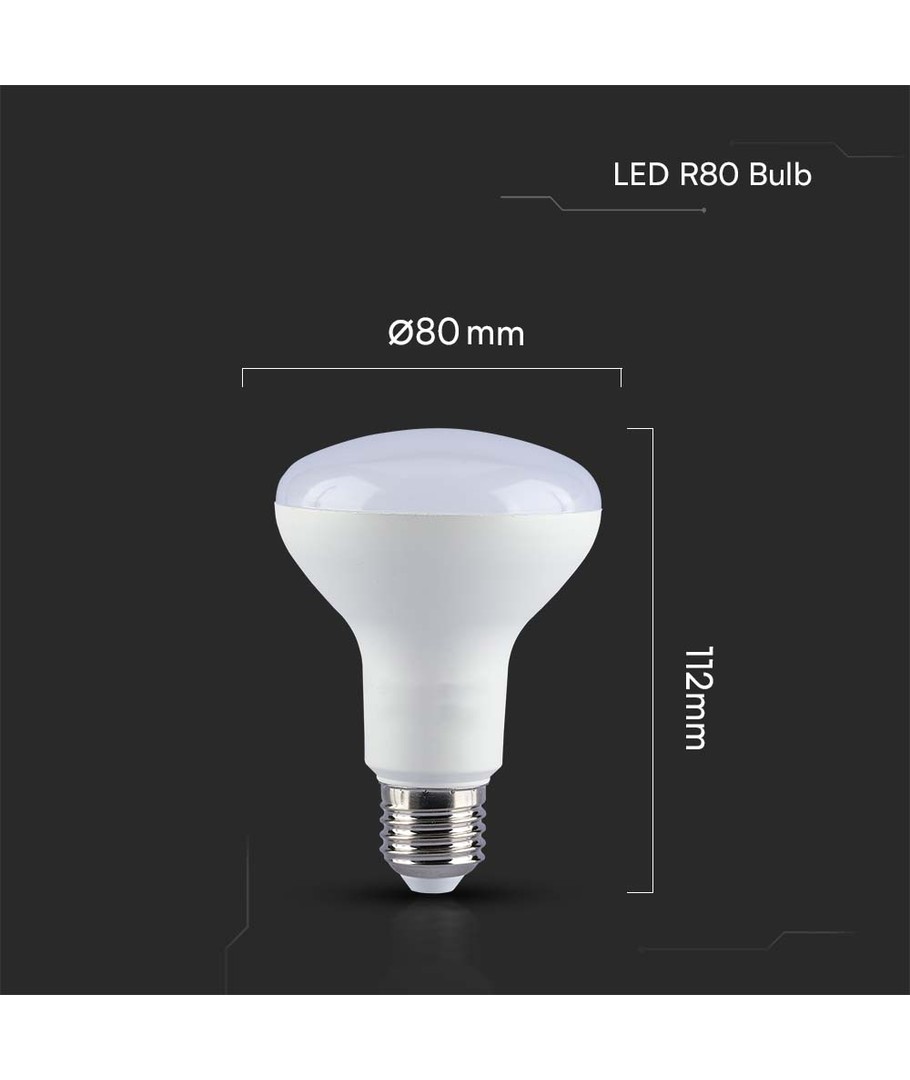 Upplev hög ljuskvalitet med Vt-280 R80 LED-lampa som erbjuder en effekt på 11W samt en standard E27 sockel för enkel installation och bred kompatibilitet.