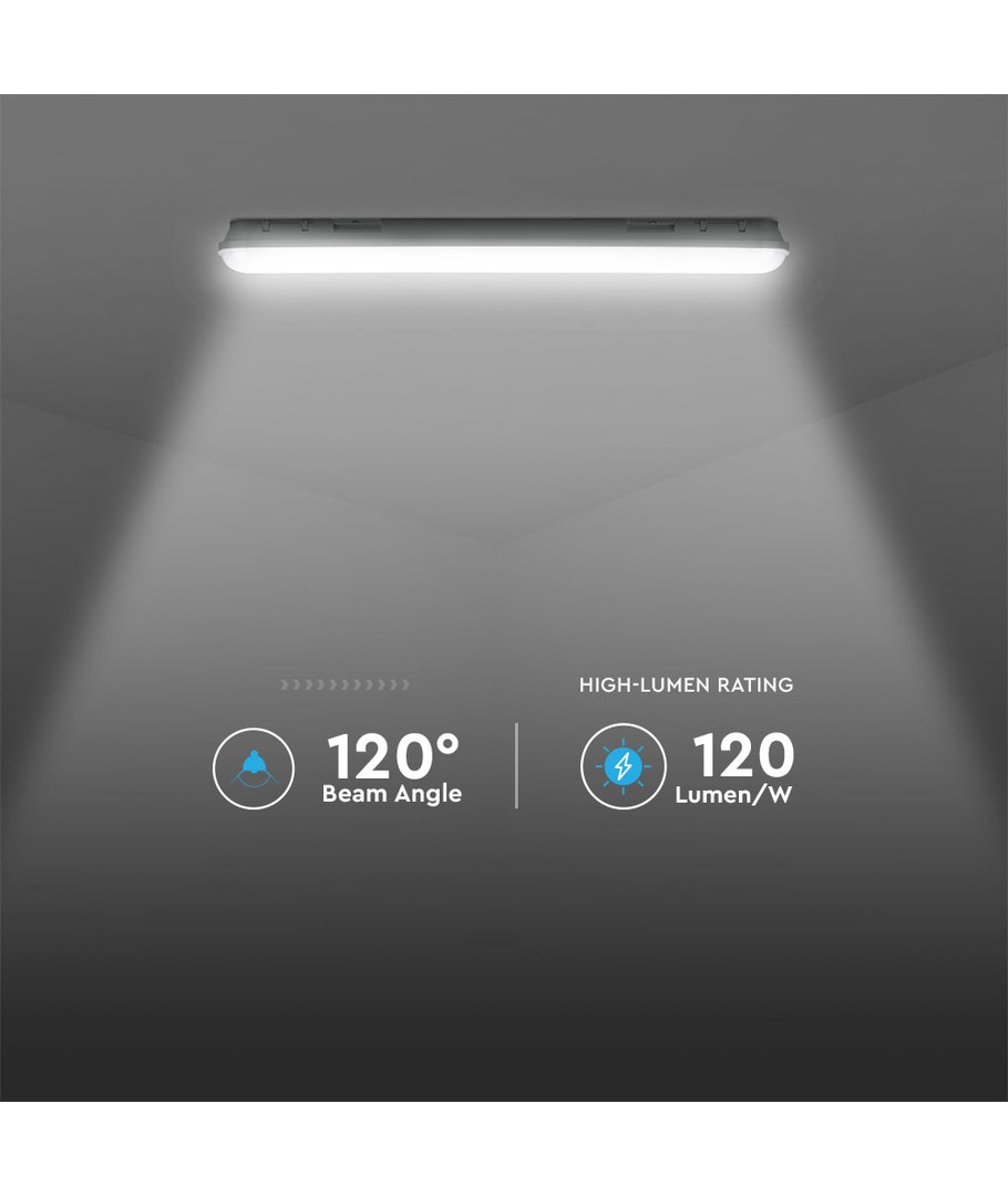 Upplev perfekt belysning med denna 120 cm LED-armatur, designad för att passa både inomhus och utomhus miljöer. Med en effekt på 36W och en ljusstyrka på 4320 lumen, erbjuder denna armatur ett starkt och klart ljus som sprider sig jämnt med en vinkel på 120 grader.