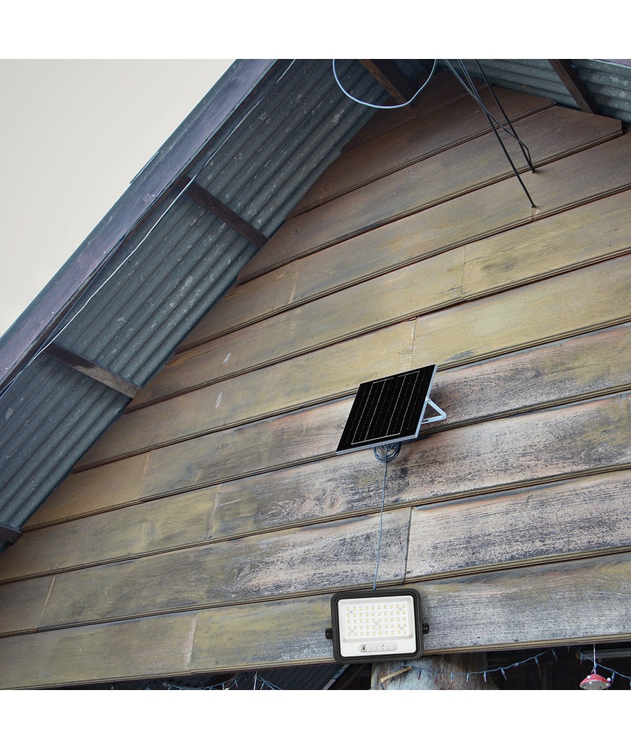 Utrustad med en 100W LED-ljuskälla och en solpanel, är denna projektor både energieffektiv och miljövänlig, vilket minskar behovet av traditionell eldrift. Den är innesluten i ett svart hus som ger ett smidigt och stilrent utseende oavsett var den placeras.