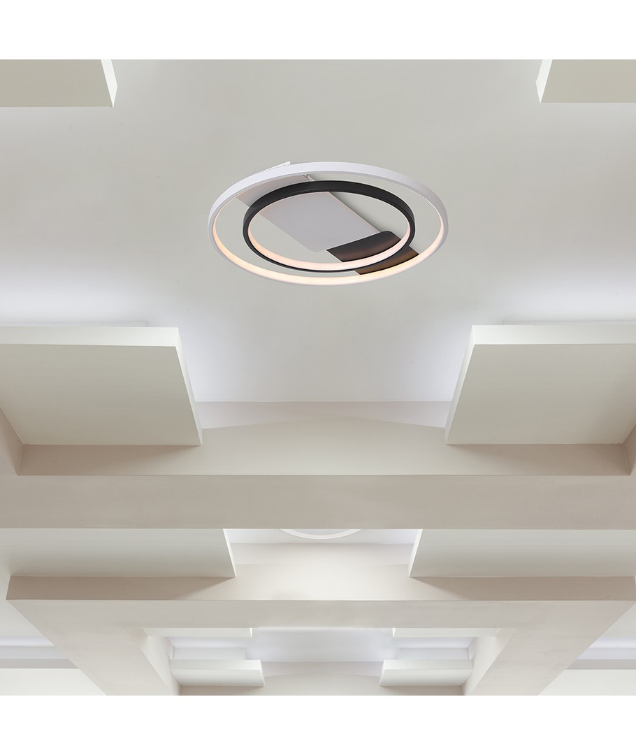 Förvandla ditt utrymme med denna dekorativa taklampa som erbjuder både stil och funktionalitet. Med sin slimmade design i vit och svart finish, passar denna lampa perfekt in i moderna hem och kontor.