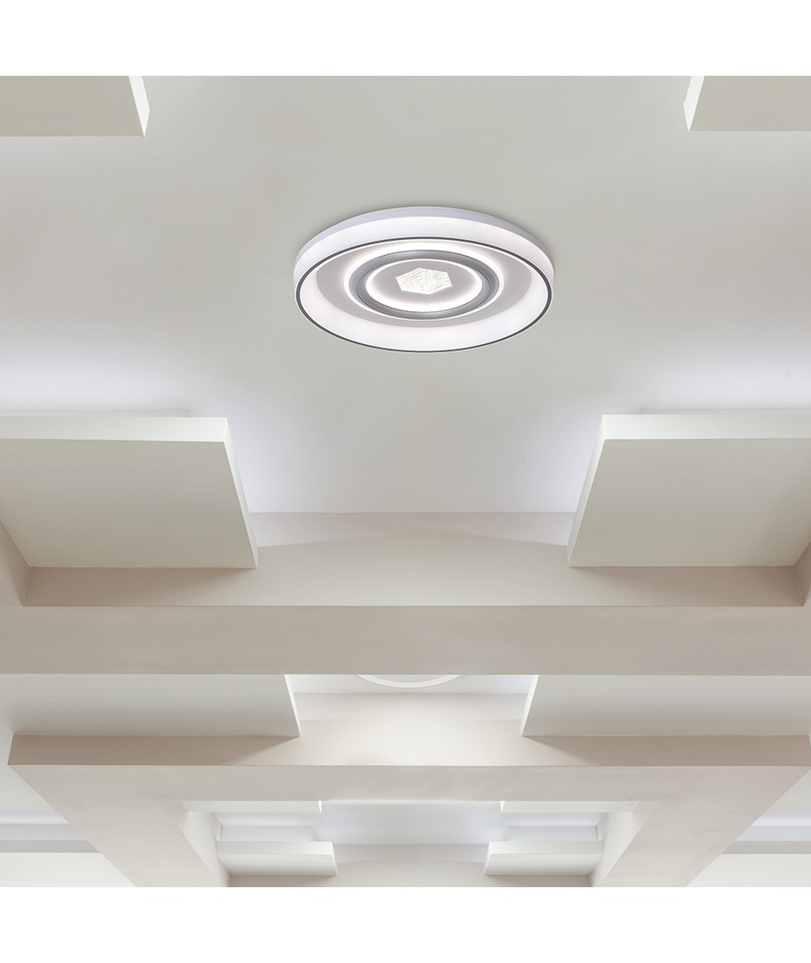 Denna taklampa passar lika bra i hemmet som på kontoret, och med sin vita, moderna design blir den ett stilrent inslag i alla rum.