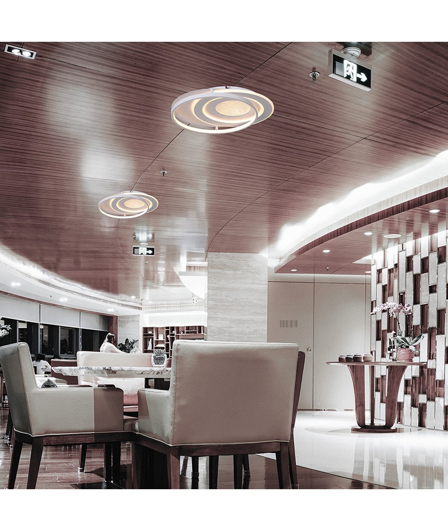 Med en stilren och modern estetik passar denna taklampa utmärkt i alla inomhusmiljöer, från vardagsrum till kontor. Dess breda ljusspridning och höga ljuskvalitet garanterar att alla färger framhävs på bästa sätt, vilket förbättrar inredningens skönhet och funktionalitet.
