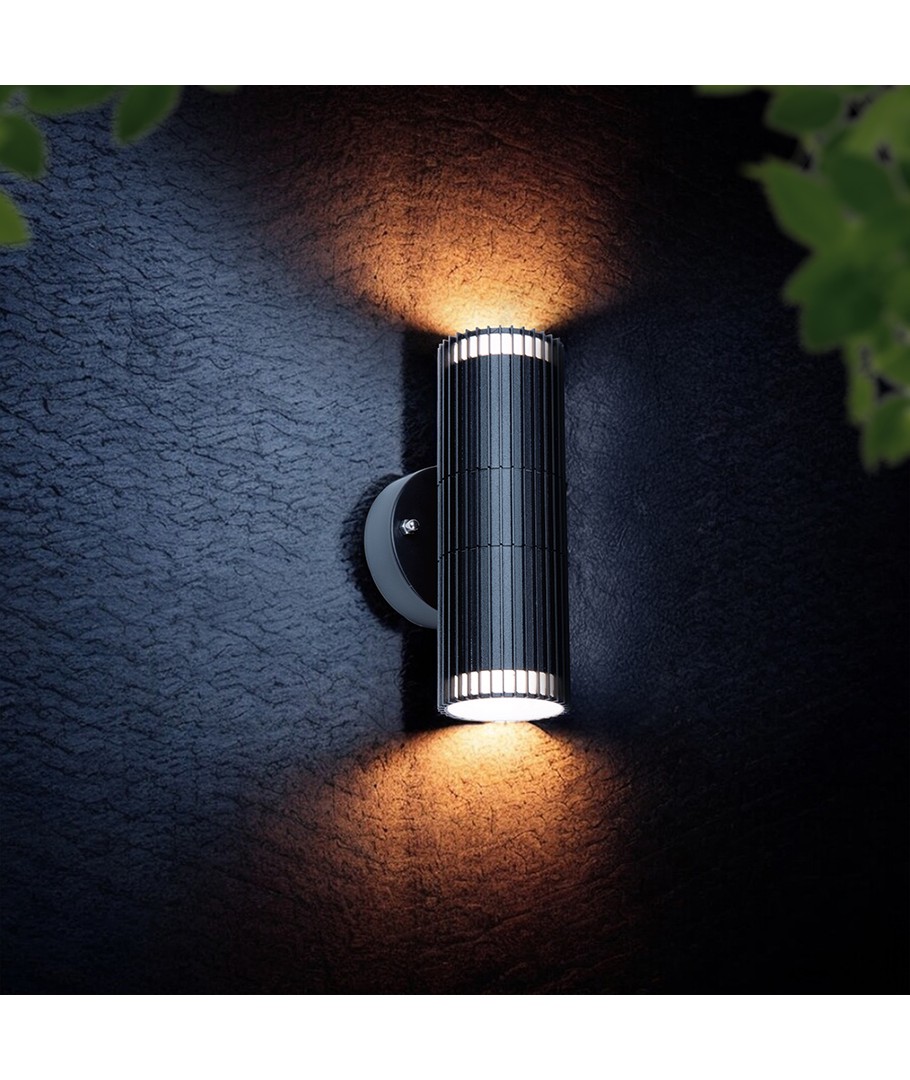 Vägglampan är utrustad med ett dubbelt huvud, vilket ger dig möjlighet att belysa ett större område och skapa en inbjudande atmosfär. Lampan använder GU10-socklar, vilket gör det enkelt att byta ljuskällor och anpassa belysningen efter dina behov.