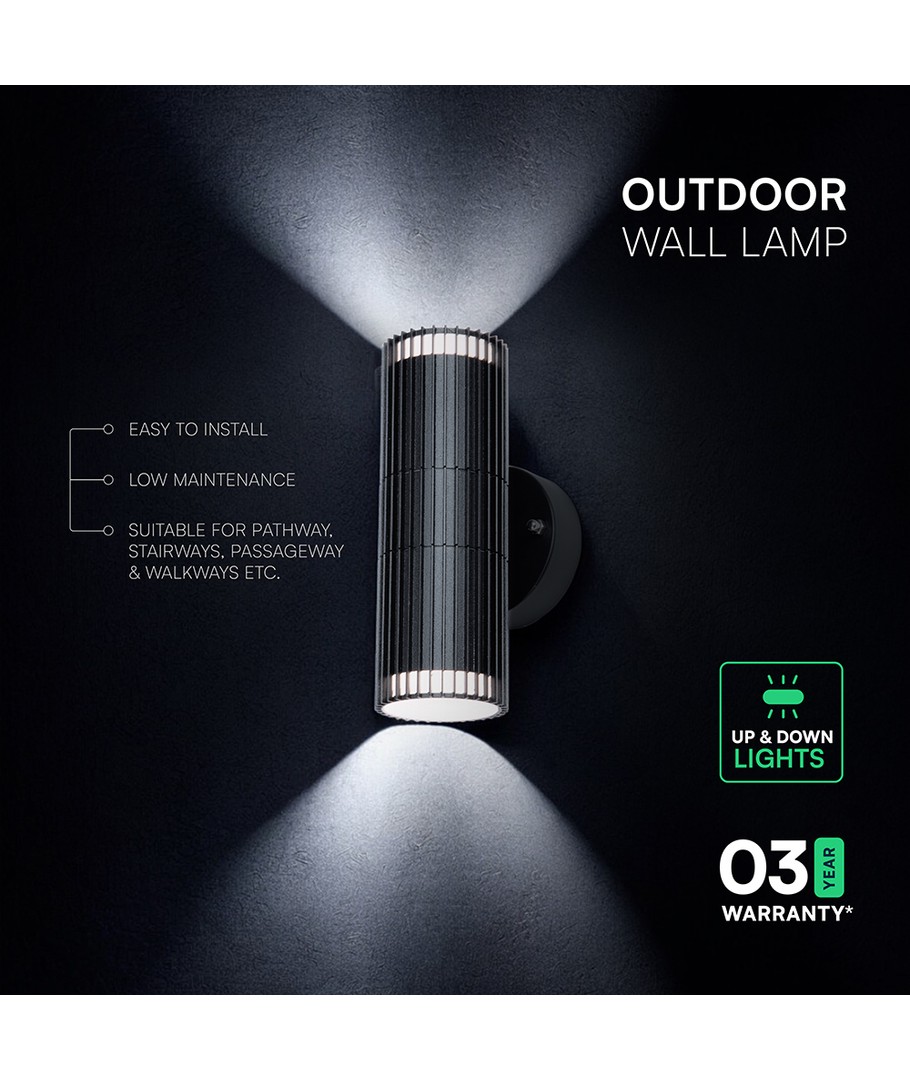 Denna stilfulla vägglampa är en del av den erkända V-Tac Pro-serien och erbjuder både estetik och funktionalitet för dina utomhusmiljöer. Med sin moderna design och praktiska funktionalitet, är denna lampa en perfekt tillskott till varje fasad eller gård.