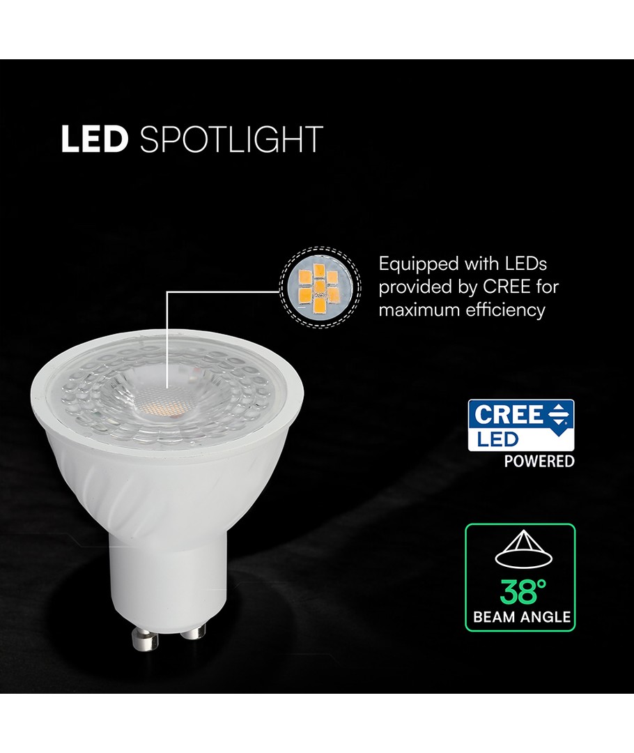 Denna spotlight är designad för att ge optimal ljusstyrka i en mängd olika miljöer. Med en effektförbrukning på 4,5W och en GU10 sockel, kombineras energibesparing med enkel installation.
