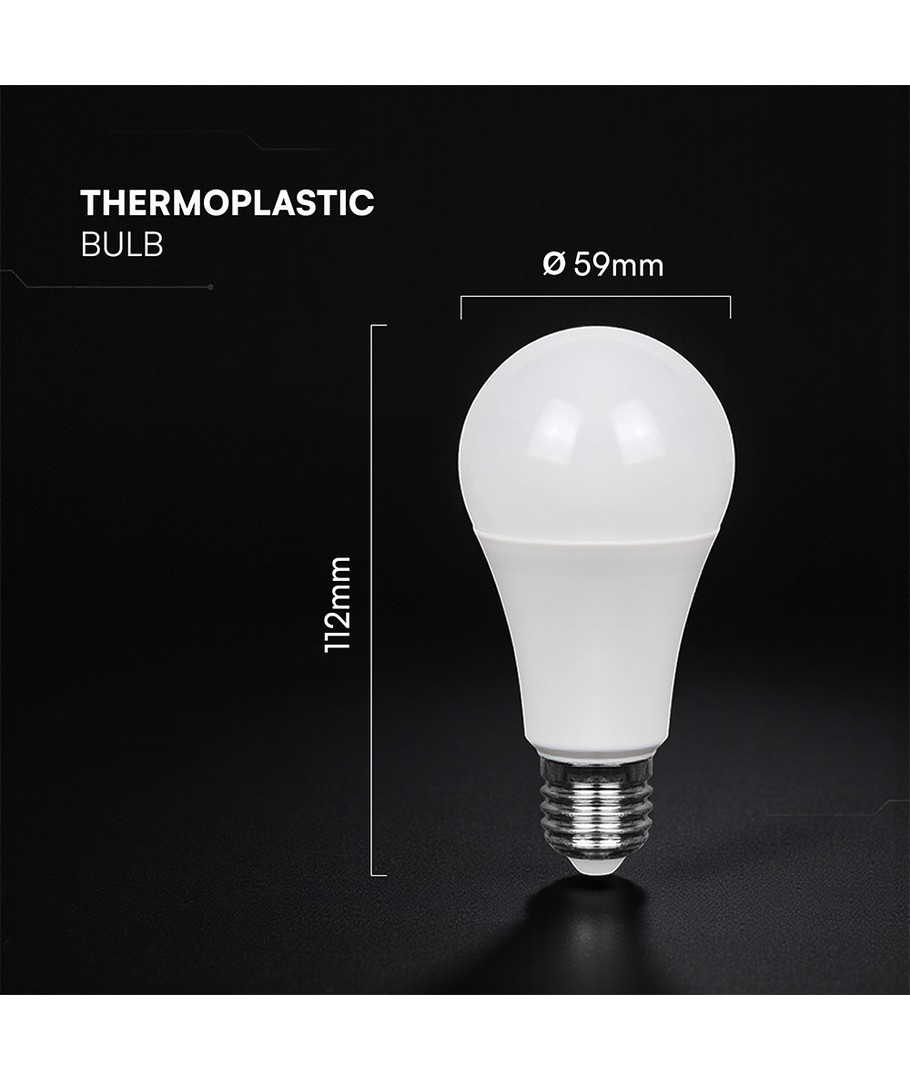 Upptäck A60 VT-2112, en 10,5W LED-lampa utrustad med avancerad E27-sockel och pålitlig Cree-chip-teknologi. Denna plastlampa utstrålar ett kallvitt ljus med en färgtemperatur på 6500K, vilket gör den perfekt för specifika användningsområden som lackering, akvarier och dekoration.