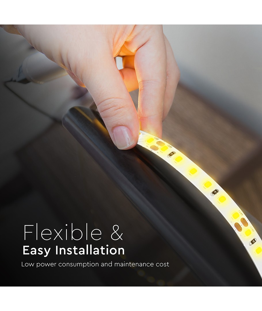 Denna LED-ljuslist säljs per meter och finns i 10-metersrullar, vilket ger flexibilitet och möjlighet till anpassning efter olika projekt och behov.