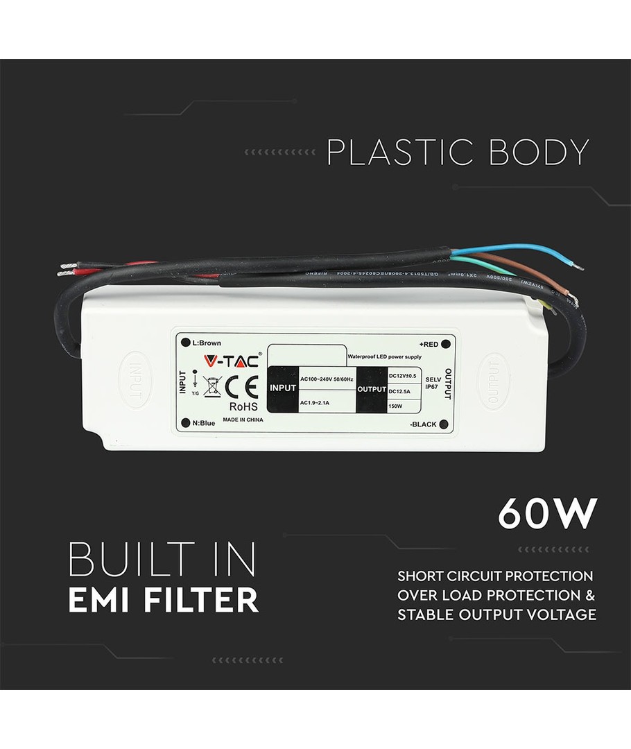 Denna strömförsörjning är designad för att leverera 60W och ger en tillförlitlig och konstant 12V utström. Perfekt för olika LED-installationer där stabilitet och prestanda är ett måste.
