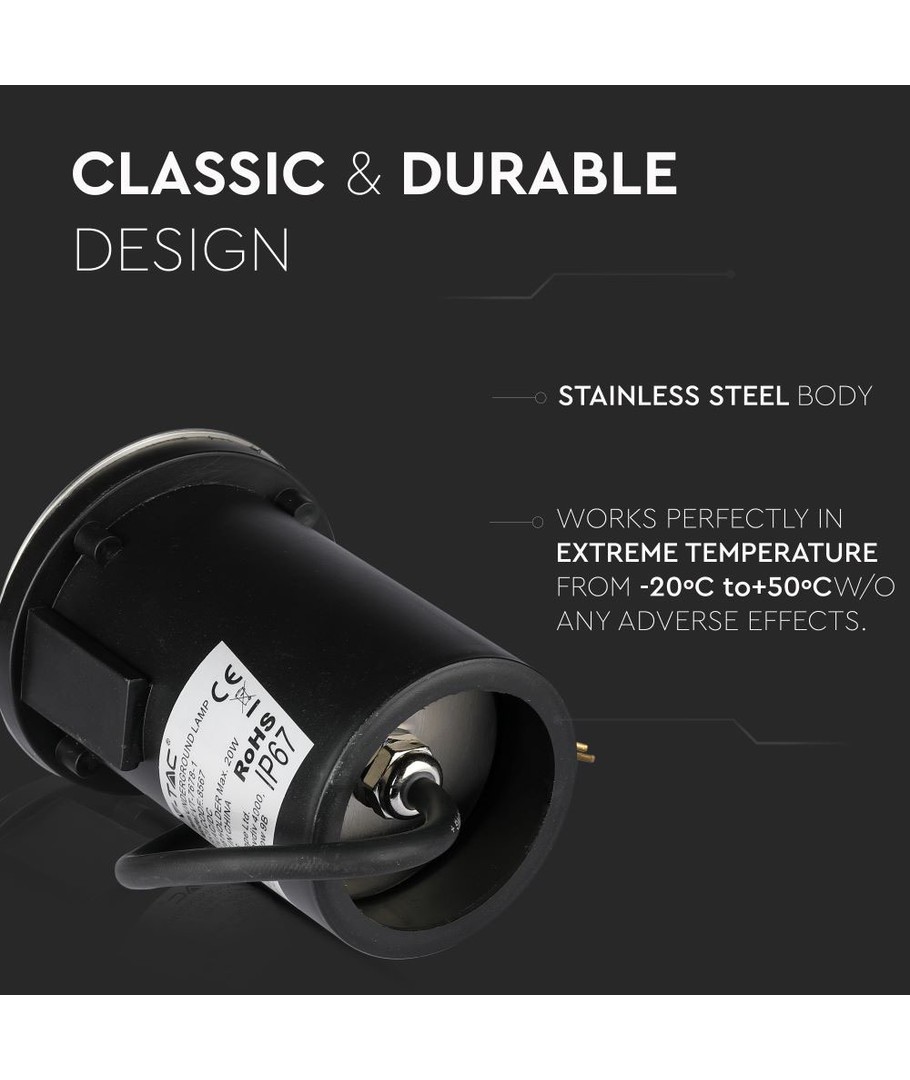 Den robusta konstruktionen och praktiska designen gör denna nedgrävningsspotlampa till ett utmärkt val för alla som vill ha en pålitlig belysning utomhus. Dess kvalitativa utförande tillsammans med den långa garantin innebär att du kan lita på dess prestanda över tid.