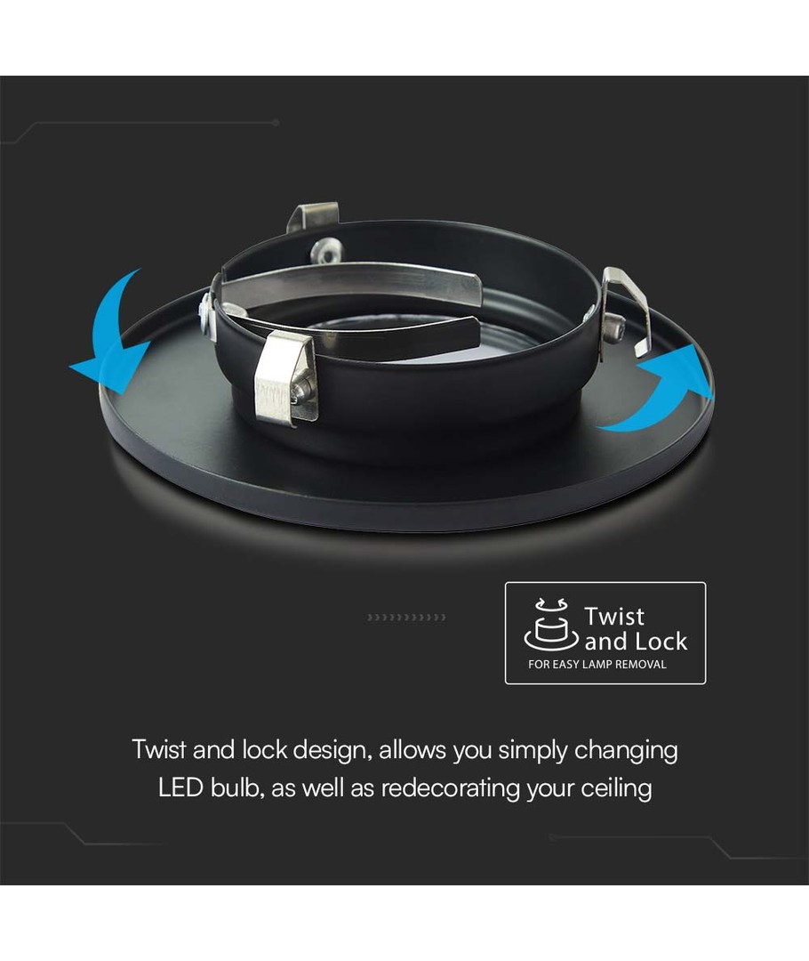 Denna svarta GU10 infällda spotlight är den perfekta lösningen för att tillföra en touch av elegans och funktionalitet till ditt hem eller kontor.