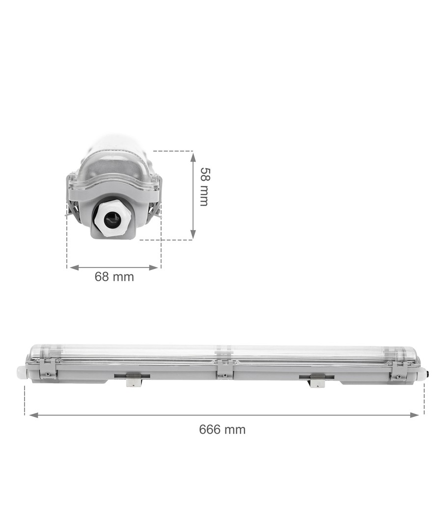 För 2x 60cm LED-rör, IP65 vattentät