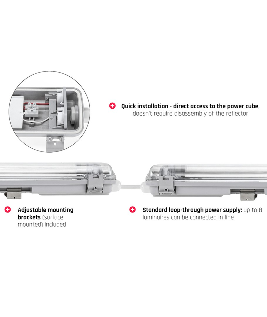 För 1x 120cm LED-lysör, IP65 vattentät