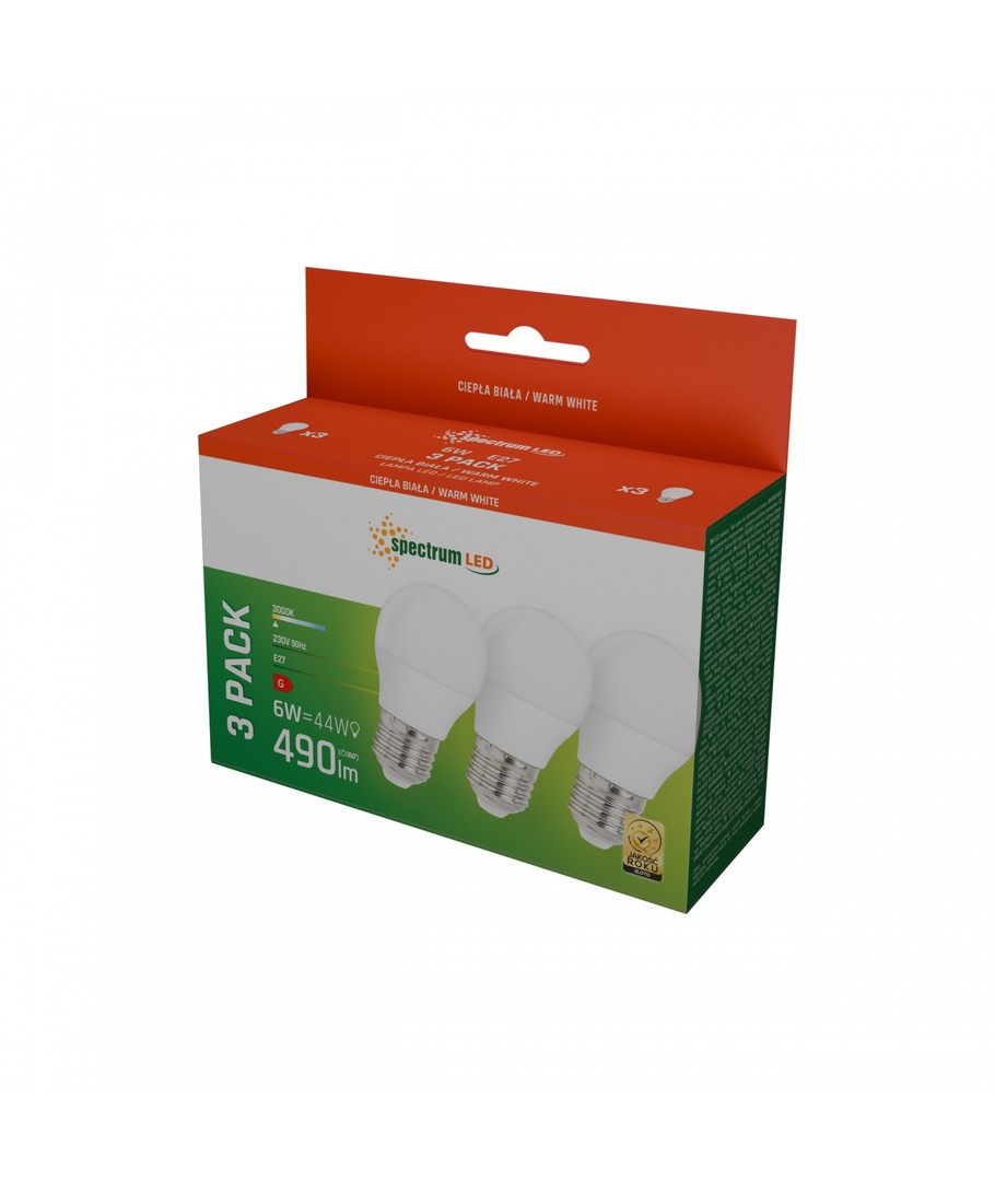 Spectrum 3-pack E27 6W LED-lampa är det idealiska valet för dem som vill kombinera kvalitet, effektivitet och värde i sina belysningslösningar.