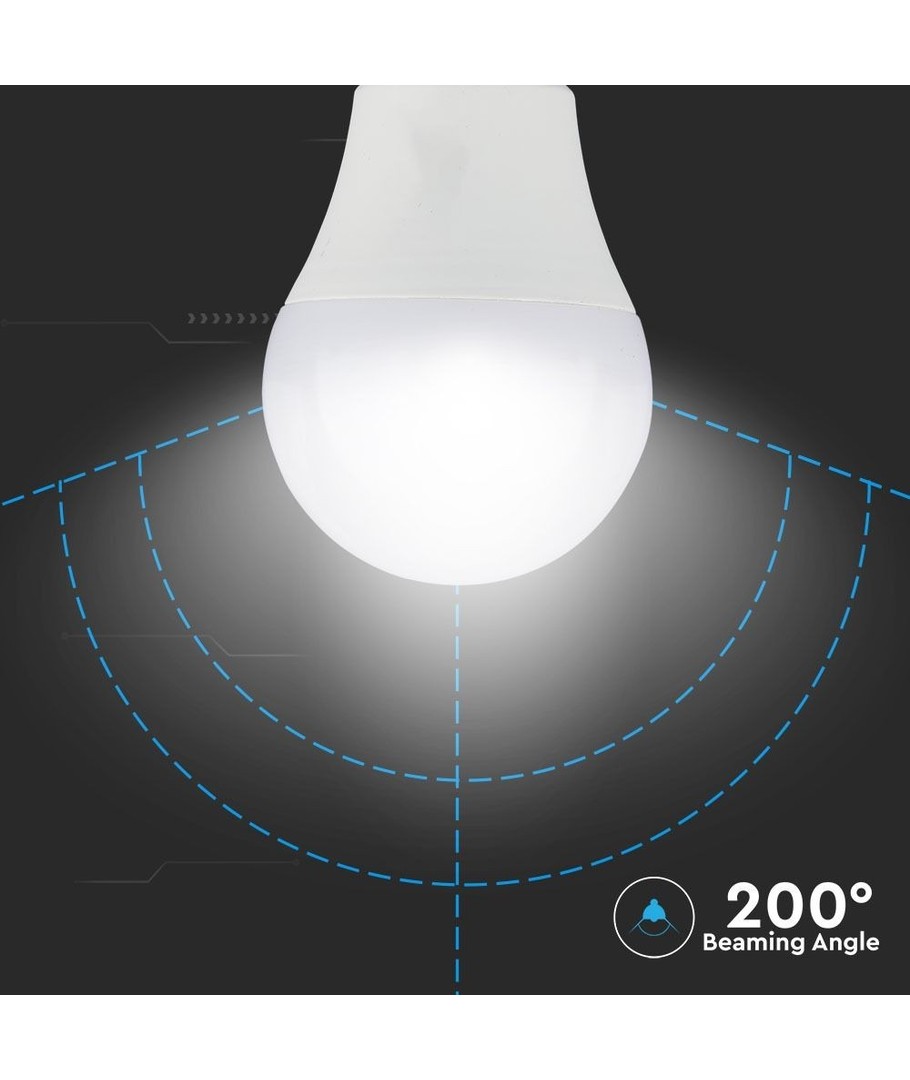Lampan erbjuder en imponerande ljusstyrka på 806 lumen med en bred ljusspridning på 200 grader. Denna spridning garanterar en jämn och effektiv fördelning av ljuset i rummet. Med ett RA-värde på 80-85, levererar lampan hög ljuskvalitet som återspeglar färger på ett naturligt och estetiskt tilltalande sätt.